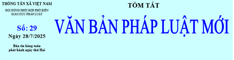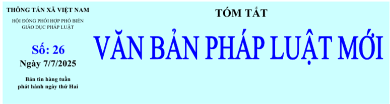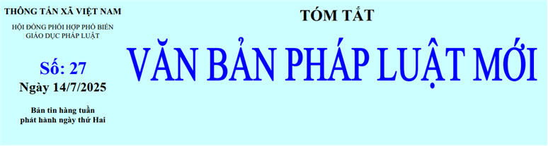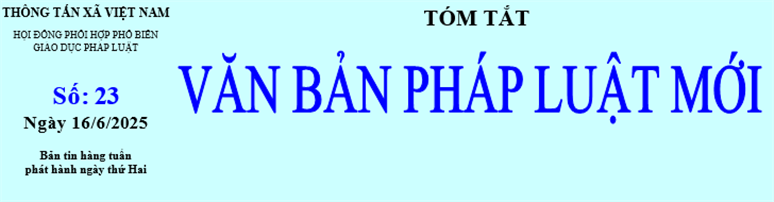 Phổ biến giáo dục Pháp luậtBản tin văn bản Pháp luật Tóm tắt Văn bản pháp luật mới: số 29 ngày 28/7/2025 của Hội đồng phối hợp Phổ biến giáo dục pháp luật TTXVN29/07/2025 14:41 Tóm tắt Văn bản pháp luật mới: số 28 ngày 21/7/2025 của Hội đồng phối hợp Phổ biến giáo dục pháp luật TTXVN22/07/2025 09:11Tóm tắt Văn bản pháp luật mới: số 27 ngày 14/7/2025 của Hội đồng phối hợp Phổ biến giáo dục pháp luật TTXVN15/07/2025 09:55 Tóm tắt Văn bản pháp luật mới: số 26 ngày 07/7/2025 của Hội đồng phối hợp Phổ biến giáo dục pháp luật TTXVN08/07/2025 08:58Tóm tắt Văn bản pháp luật mới: số 25 ngày 30/6/2025 của Hội đồng phối hợp Phổ biến giáo dục pháp luật TTXVN30/06/2025 09:47Tóm tắt Văn bản pháp luật mới: số 23 ngày 16/6/2025 của Hội đồng phối hợp Phổ biến giáo dục pháp luật TTXVN17/06/2025 10:45Tóm tắt Văn bản pháp luật mới: số 22 ngày 09/6/2025 của Hội đồng phối hợp Phổ biến giáo dục pháp luật TTXVN10/06/2025 10:15Tóm tắt Văn bản pháp luật mới: số 21 ngày 02/6/2025 của Hội đồng phối hợp Phổ biến giáo dục pháp luật TTXVN04/06/2025 09:30Tóm tắt Văn bản pháp luật mới: số 20 ngày 26/5/2025 của Hội đồng phối hợp Phổ biến giáo dục pháp luật TTXVN26/05/2025 14:53Tóm tắt Văn bản pháp luật mới: số 18 ngày 12/5/2025 của Hội đồng phối hợp Phổ biến giáo dục pháp luật TTXVN13/05/2025 10:06 1 2 3 4 5 ... 68
