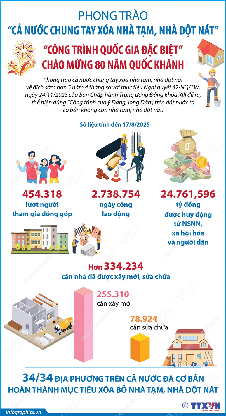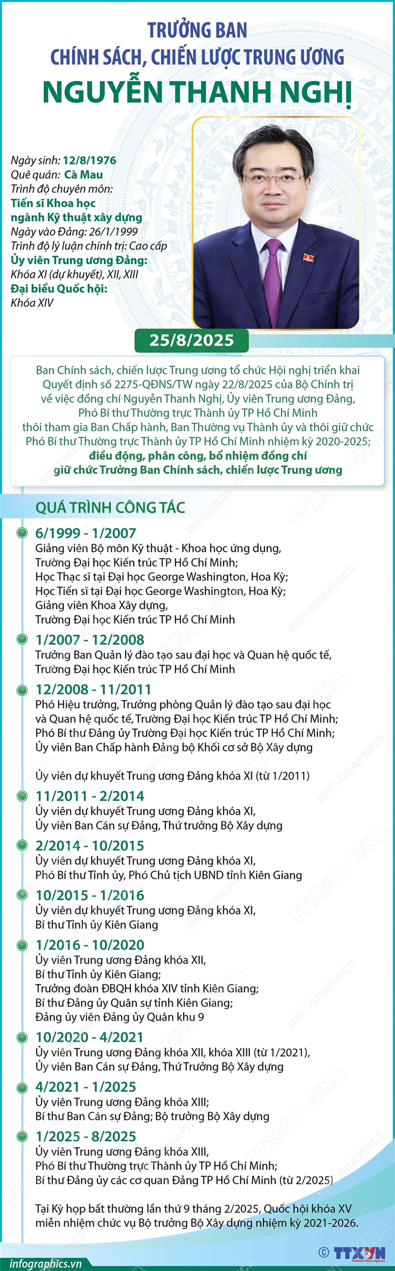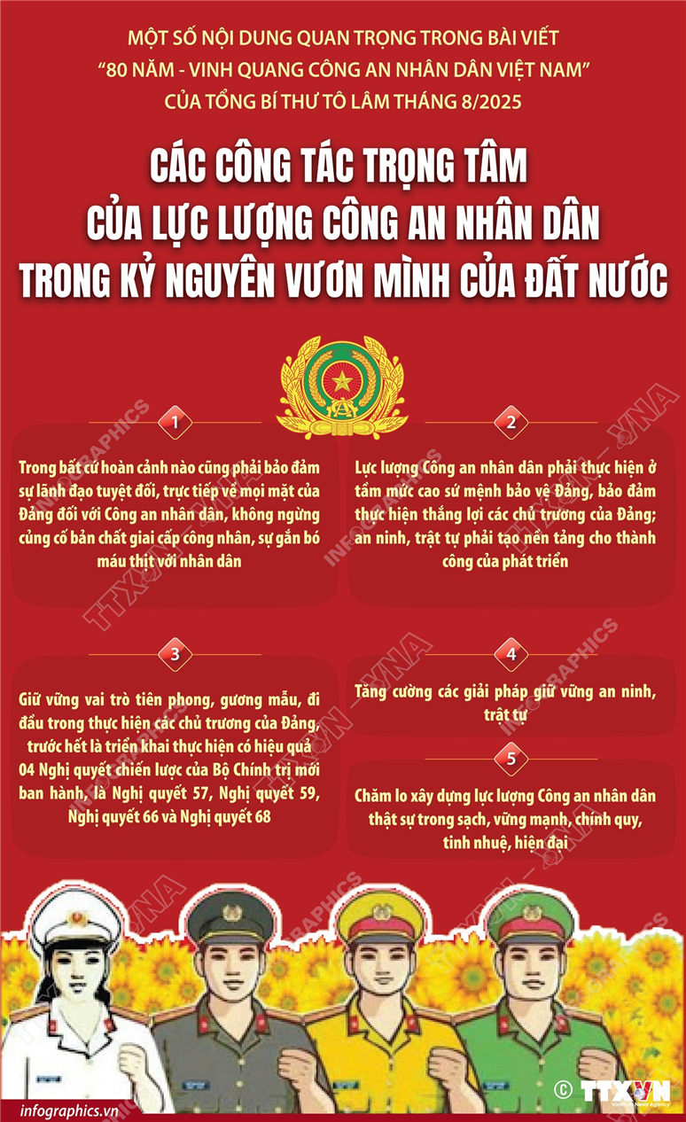 Phổ biến giáo dục Pháp luậtThông tin đồ họa Trưởng Ban Chính sách, chiến lược Trung ương Nguyễn Thanh Nghị27/08/2025 15:30Hà Nội (TTXVN 26/8) Chiều 25/8/2025, tại Hà Nội, Ban Chính sách, chiến lược Trung ương tổ chức Hội nghị triển khai Quyết định số 2275-QĐNS/TW ngày 22/8/2025 của Bộ Chính trị về việc đồng chí Nguyễn Thanh Nghị, Ủy viên Trung ương Đảng, Phó Bí thư Thường trực Thành ủy Thành phố Hồ Chí Minh thôi tham gia Ban Chấp hành, Ban Thường vụ Thành ủy và thôi giữ chức Phó Bí thư Thường trực Thành ủy Thành phố Hồ Chí Minh nhiệm kỳ 2020-2025; điều động, phân công, bổ nhiệm giữ chức Trưởng Ban Chính sách, chiến lược Trung ương. Bí thư Thành ủy Thành phố Hồ Chí Minh Trần Lưu Quang26/08/2025 15:22Ban Bí thư chỉ đạo ứng phó với cơn bão số 5 (Kajiki)25/08/2025 15:21 Nhiều kết quả quan trọng sau gần 2 tháng vận hành chính quyền địa phương 2 cấp25/08/2025 15:20Hà Nội (TTXVN 24/8) Hai tháng triển khai vận hành chính quyền địa phương theo mô hình 2 cấp, đến nay cơ bản “thuận buồm, xuôi gió”, đang đi vào ổn định, thể hiện sự nỗ lực của cả hệ thống chính trị; đáp ứng đúng, trúng với nguyện vọng của nhân dân; giải quyết được những khó khăn, vướng mắc trong quá trình phát triển. Nền tảng số “A80 - Tự hào Việt Nam”: Hỗ trợ tra cứu chuỗi hoạt động dịp Quốc khánh25/08/2025 15:19Hà Nội (TTXVN 23/8) Sau khi Hà Nội chính thức đưa vào sử dụng ứng dụng “A80 - Tự hào Việt Nam” để phục vụ người dân tra cứu thông tin lễ kỷ niệm, diễu binh, diễu hành 80 năm Cách mạng Tháng Tám thành công và Quốc khánh 2/9, hàng nghìn người đã cài đặt, sử dụng ứng dụng và phản hồi tích cực. Ứng dụng do Sở Văn hóa và Thể thao Hà Nội... Chính phủ dưới sự lãnh đạo của Đảng 80 năm hành trình vì nước, vì dân25/08/2025 15:18Hà Nội (TTXVN 20/8) Nhìn lại lịch sử 80 năm của Chính phủ qua các giai đoạn đầy cam go, thử thách nhưng cũng rất vẻ vang, vinh dự, tự hào của Cách mạng Việt Nam, dưới sự lãnh đạo của Trung ương Đảng, của Chủ tịch Hồ Chí Minh kính yêu, thường xuyên trực tiếp là Bộ Chính trị, Ban Bí thư, của đồng chí Tổng Bí thư qua các thời kỳ, từ Chính phủ lâm thời nước Việt...34/34 địa phương trên cả nước đã cơ bản hoàn thành mục tiêu xóa bỏ nhà tạm, nhà dột nát20/08/2025 15:04Hà Nội (TTXVN 19/8) Với 334.234 căn nhà được xây mới và sửa chữa, về đích sớm trước 5 năm 4 tháng so với mục tiêu Nghị quyết 42-NQ/TW, ngày 24/11/2023 của Ban Chấp hành Trung ương Đảng khóa XIII đề ra, phong trào cả nước chung tay xóa nhà tạm, nhà dột nát là “công trình quốc gia đặc biệt” chào mừng 80 năm Quốc khánh. Theo tổng hợp báo cáo từ 34...Thông điệp hoạt động diễu binh diễu hành kỷ niệm 80 năm Cách mạng tháng Tám và Quốc khánh 2/919/08/2025 15:03Hà Nội (TTXVN 17/8) Tại buổi họp báo Chính phủ thường kỳ tháng 7/2025 diễn ra chiều 7/8, Thiếu tướng Tống Văn Thanh, Phó Cục trưởng Cục Tuyên huấn, Tổng cục Chính trị Quân đội Nhân dân Việt Nam: Việc tổ chức diễu binh diễu hành trong lễ kỷ niệm đã được Trung ương giao cho Bộ Quốc phòng chủ trì, phối hợp với Bộ Công an, Bộ Văn hóa, Thể thao và Du lịch, thành phố Hà Nội...Kết quả thực hiện đề án 1 triệu căn hộ nhà ở xã hội19/08/2025 15:02Hà Nội (TTXVN 17/8) Theo báo cáo đánh giá tình hình phát triển nhà ở xã hội 7 tháng đầu năm 2025 của Bộ Xây dựng, tính đến 31/7/2025, cả nước có 692 dự án nhà ở xã hội đang được triển khai với quy mô 633.559 căn. Trong đó 146 dự án hoàn thành, quy mô 103.717 căn; 144 dự án đã khởi công xây dựng, đang triển khai với...Các công tác trọng tâm của lực lượng Công an nhân dân trong kỷ nguyên vươn mình của đất nước19/08/2025 15:01Hà Nội (TTXVN 16/8) Trong bài viết “80 năm - Vinh quang Công an nhân dân Việt Nam”, Tổng Bí thư Tô Lâm khẳng định: Trong kỷ nguyên vươn mình của đất nước, trách nhiệm của lực lượng Công an nhân dân rất nặng nề nhưng vô cùng vinh quang. Lực lượng Công an nhân dân cần thực hiện các công tác trọng tâm sau: Trong bất cứ hoàn cảnh nào cũng... 1 2 3 4 5 ... 114