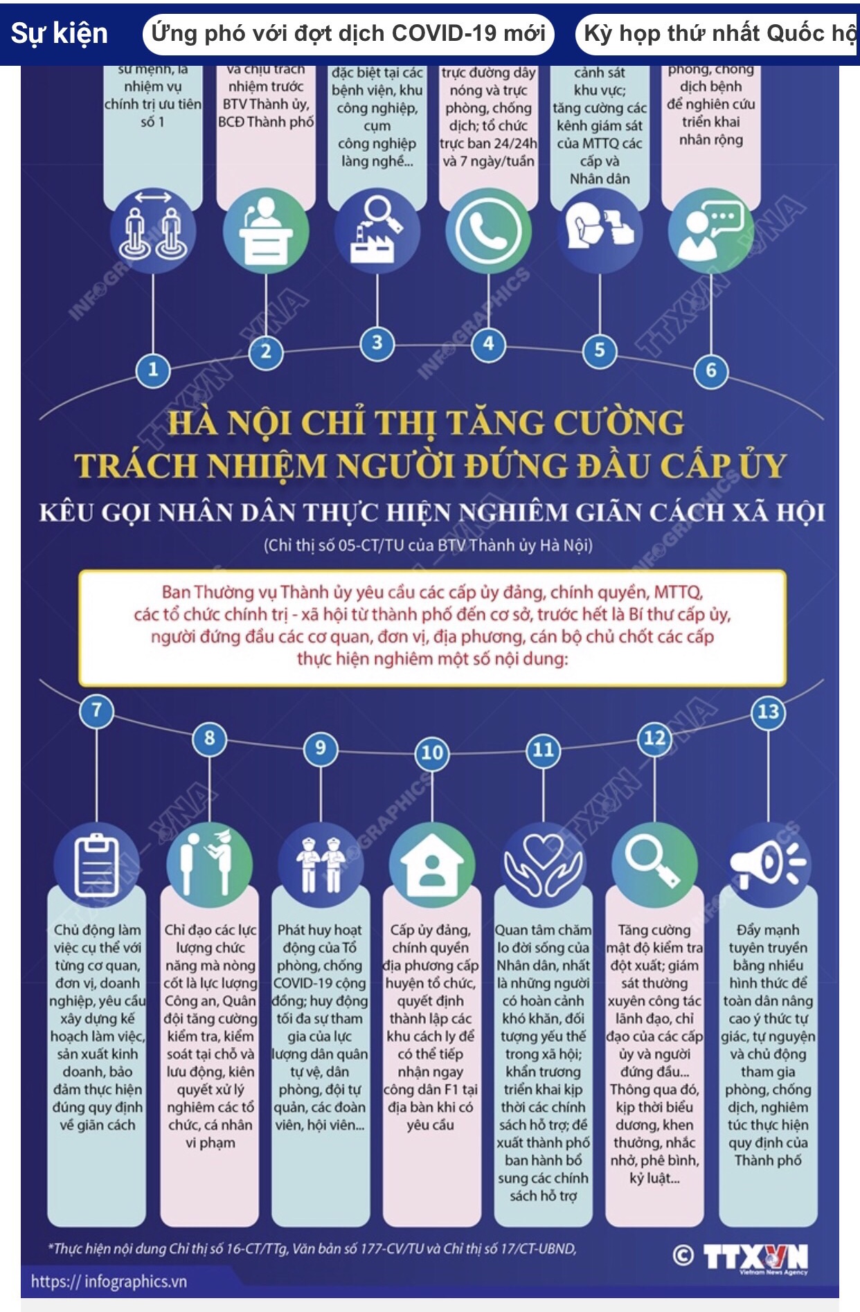 Tin cùng chuyên mục Hà Nội tiếp tục giãn cách xã hội đến 6h ngày 23/8/202109/08/2021 13:26UBND thành phố HN ban hành Công điện số 18/CĐ-HN ngày 6/8/2021, trong đó yêu cầu giãn cách xã hội trên phạm vi toàn thành phố từ 6h ngày 08/8/2021 đến 6h ngày 23/8/2021 Khung kế hoạch thời gian năm học 2021-202209/08/2021 13:22Bộ Giáo dục và Đào tạo ban hành Quyết định Số 2551/QĐ-BGDĐT, ban hành khung kế hoạch thời gian năm học 2021-2022 đối với giáo dục mầm non, giáo dục phổ thông và giáo dục thường xuyên. Xây dựng nông thôn mới nâng cao, nông thôn mới kiểu mẫu02/08/2021 10:27Quốc hội khóa XV đã biểu quyết thông qua Nghị quyết phê duyệt chủ trương đầu tư Chương trình mục tiêu quốc gia xây dựng nông thôn mới giai đoạn 2021-2025. Giảm tiền điện cho khách hàng bị ảnh hưởng của dịch COVID-1902/08/2021 10:25Chính phủ ban hành Nghị quyết số 83/NQ-CP ngày 31/7/2021 về việc thống nhất phương án hỗ trợ giảm tiền điện, giảm giá điện (đợt 4) cho các khách hàng sử dụng điện bị ảnh hưởng của dịch COVID-19 theo đề xuất của Bộ Công Thương. Hà Nội chỉ thị tăng cường trách nhiệm người đứng đầu cấp uỷ trong công tác phòng chống dịch bệnh31/07/2021 13:35Ban Thường vụ Thành uỷ yêu cầu các cấp uỷ đảng, chính quyền, MTTQ, các tổ chức chính trị - xã hội từ thành phố đến cơ sở, trước hết là bí thư cấp uỷ, người đứng đầu các cơ quan, đơn vị, địa phương, cán bộ chủ chốt các cấp thực hiện nghiêm các nội dung sau Những đối tượng được thi tốt nghiệp THPT đợt 223/07/2021 09:44ộ Giáo dục và Đào tạo vừa ban hành Hướng dẫn tổ chức thi tốt nghiệp THPT đợt 2, trong đó nêu rõ đối tượng sẽ được dự thi đợt này.