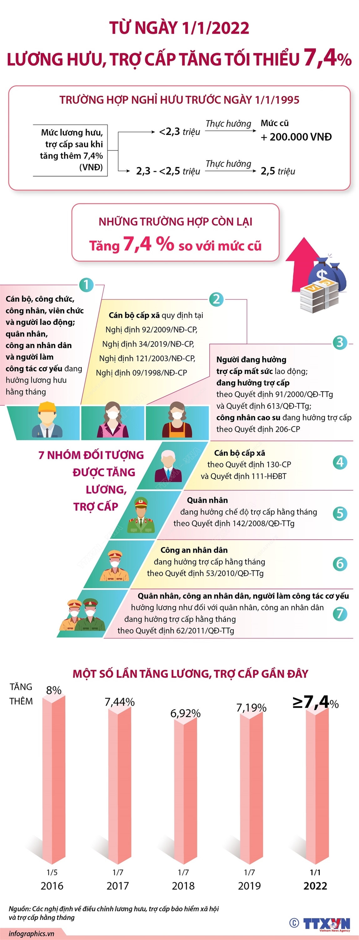 Tin cùng chuyên mục Lịch Nghỉ Tết Nguyên đán Nhâm Dần 202213/01/2022 16:05Lịch nghỉ Tết Nguyên đán Nhâm Dần 2022 của công chức, viên chức kéo dài 9 ngày liên tục, từ thứ Bảy 29/1/2022 đến hết ngày Chủ Nhật 6/2/2022, gồm 5 ngày nghỉ Tết theo Bộ Luật Lao động và 4 ngày nghỉ hàng tuần. Nhìn lại một số vụ “đại án” được đưa ra xét xử năm 202111/01/2022 10:15Năm 2021 tiếp tục là một năm Đảng, Nhà nước quyết liệt thực hiện công tác phòng, chống tham nhũng. Nhiều vụ đại án kinh tế, tham nhũng đã được phát hiện, đấu tranh, điều tra, truy tố và đưa ra xét xử, hàng loạt cán bộ chủ chốt, nguyên là lãnh đạo cấp cao vi phạm bị xử lý hình sự với những bản án nghiêm khắc. Những nhiệm vụ, giải pháp chủ yếu phát triển kinh tế-xã hội năm 202210/01/2022 10:06Chính phủ vừa ban hành Nghị quyết 01/NQ-CP ngày 8/1/2022 về nhiệm vụ, giải pháp chủ yếu thực hiện Kế hoạch phát triển kinh tế-xã hội và Dự toán ngân sách nhà nước năm 2022. Theo đó, chủ đề điều hành năm 2022 là “Đoàn kết kỷ cương, chủ động thích ứng, an toàn hiệu quả, phục hồi phát triển”. Với 12 nhiệm vụ, giải pháp chủ yếu, Chính phủ phấn đấu tăng... 4 nội dung sẽ được Quốc hội khóa XV quyết định tại Kỳ họp bất thường lần thứ nhất07/01/2022 17:00Kỳ họp bất thường lần thứ nhất, Quốc hội khóa XV diễn ra từ 4 đến 11/1/2022 theo hình thức trực tuyến cả kỳ qua cầu truyền hình từ Nhà Quốc hội (gồm cả Đoàn Hà Nội) tới 62 Đoàn Đại biểu Quốc hội tại các tỉnh, thành phố trực thuộc Trung ương. Tại kỳ họp này, Quốc hội sẽ xem xét, thông qua Luật sửa đổi, bổ sung một số điều của Luật Đầu tư công, Luật... Từ 1/1/2022: Hiệp định Đối tác Kinh tế Toàn diện Khu vực (RCEP) chính thức có hiệu lực07/01/2022 13:56Hiệp định Đối tác Kinh tế Toàn diện Khu vực (RCEP) - Hiệp định Thương mại Tự do (FTA) có quy mô lớn nhất thế giới giữa ASEAN và 5 nước đối tác chính thức có hiệu lực. Đây là hiệp định thương mại tự do châu Á-Thái Bình Dương tạo ra khối thương mại lớn nhất thế giới theo quy mô kinh tế. Từ ngày 1/1/2022: Lương hưu, trợ cấp tăng tối thiểu 7,4%07/01/2022 13:56Từ ngày 1/1/2022, lương hưu, trợ cấp bảo hiểm xã hội và trợ cấp hằng tháng của 7 nhóm đối tượng sẽ được tăng tối thiểu 7,4%, căn cứ trên mức hưởng của tháng 12/2021.