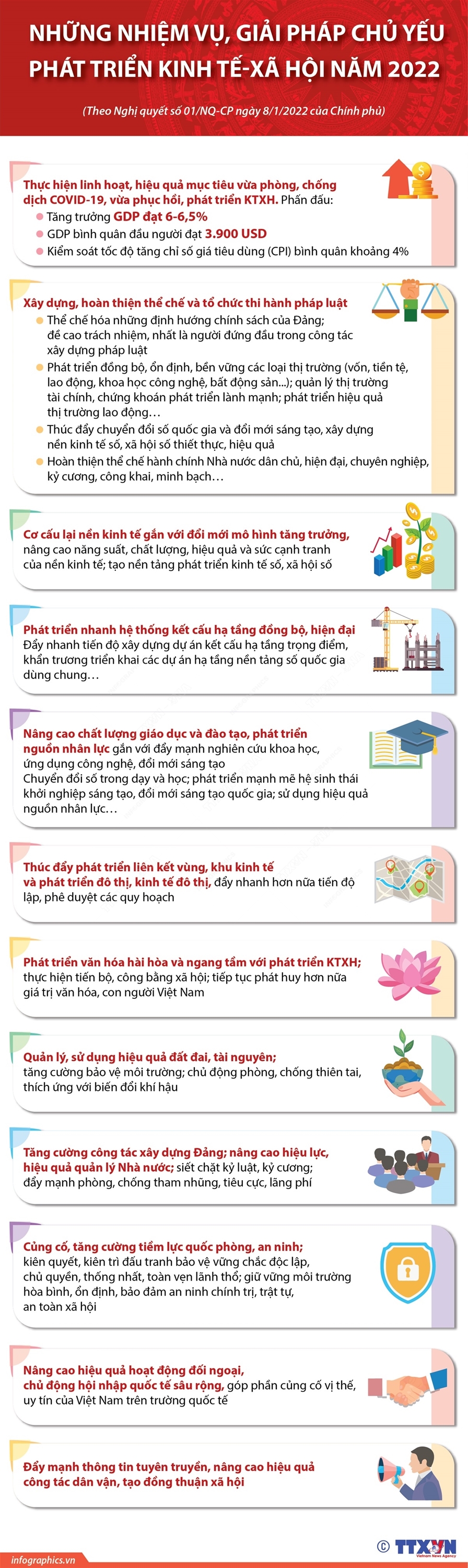 Tin cùng chuyên mục Chính sách tiền tệ hỗ trợ Chương trình phục hồi và phát triển kinh tế-xã hội13/01/2022 16:05Nghị quyết về chính sách tài khóa, tiền tệ hỗ trợ Chương trình phục hồi và phát triển kinh tế-xã hội đã được Kỳ họp bất thường lần thứ nhất, Quốc hội khóa XV (từ ngày 4-11/1/2022) thông qua. Theo Nghị quyết, chính sách tiền tệ sẽ tập trung giải pháp để điều hành đồng bộ, linh hoạt các công cụ lãi suất, tiếp tục tiết giảm chi phí quản lý để phấn đấu... Chính sách tài khóa hỗ trợ Chương trình phục hồi và phát triển kinh tế-xã hội13/01/2022 16:05Nghị quyết về chính sách tài khóa, tiền tệ hỗ trợ Chương trình phục hồi và phát triển kinh tế-xã hội đã được Kỳ họp bất thường lần thứ nhất, Quốc hội khóa XV (từ ngày 4-11/1/2022) thông qua. Theo Nghị quyết, gói giải pháp tài khóa gồm miễn, giảm thuế phí, đầu tư phát triển và một số chính sách tài khóa khác. Trong đó, riêng chính sách tăng chi cho... Kỳ họp bất thường lần thứ nhất, Quốc hội khóa XV hoàn thành toàn bộ chương trình đề ra13/01/2022 16:05Kỳ họp bất thường lần thứ nhất, Quốc hội khóa XV tháng 1/2022 đã hoàn thành toàn bộ chương trình đề ra. Với gần 1.100 lượt đại biểu phát biểu qua 3 phiên thảo luận Tổ và 3 phiên họp toàn thể trực tuyến, các vị đại biểu Quốc hội đã tập trung nghiên cứu, thảo luận sôi nổi, đóng góp rất nhiều ý kiến sâu sắc, tâm huyết, chất lượng, có tính xây dựng các... Lịch Nghỉ Tết Nguyên đán Nhâm Dần 202213/01/2022 16:05Lịch nghỉ Tết Nguyên đán Nhâm Dần 2022 của công chức, viên chức kéo dài 9 ngày liên tục, từ thứ Bảy 29/1/2022 đến hết ngày Chủ Nhật 6/2/2022, gồm 5 ngày nghỉ Tết theo Bộ Luật Lao động và 4 ngày nghỉ hàng tuần. Nhìn lại một số vụ “đại án” được đưa ra xét xử năm 202111/01/2022 10:15Năm 2021 tiếp tục là một năm Đảng, Nhà nước quyết liệt thực hiện công tác phòng, chống tham nhũng. Nhiều vụ đại án kinh tế, tham nhũng đã được phát hiện, đấu tranh, điều tra, truy tố và đưa ra xét xử, hàng loạt cán bộ chủ chốt, nguyên là lãnh đạo cấp cao vi phạm bị xử lý hình sự với những bản án nghiêm khắc. Những nhiệm vụ, giải pháp chủ yếu phát triển kinh tế-xã hội năm 202210/01/2022 10:06Chính phủ vừa ban hành Nghị quyết 01/NQ-CP ngày 8/1/2022 về nhiệm vụ, giải pháp chủ yếu thực hiện Kế hoạch phát triển kinh tế-xã hội và Dự toán ngân sách nhà nước năm 2022. Theo đó, chủ đề điều hành năm 2022 là “Đoàn kết kỷ cương, chủ động thích ứng, an toàn hiệu quả, phục hồi phát triển”. Với 12 nhiệm vụ, giải pháp chủ yếu, Chính phủ phấn đấu tăng...