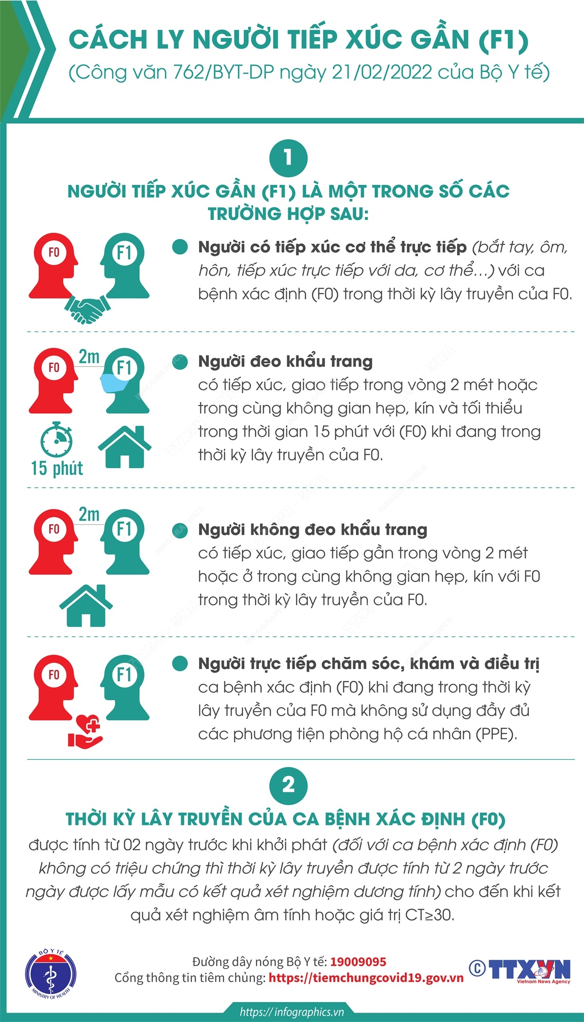 Tin cùng chuyên mục Khuyến cáo sử dụng thuốc Molnupiravir an toàn và hiệu quả28/02/2022 13:57Để đảm bảo nguồn cung ứng và tăng cường khả năng tiếp tận thuốc mới trong điều trị bệnh COVID-19, ngày 17/02/2022, Bộ Y tế đã có Quyết định số 69/QĐ-QLD cấp giấy đăng ký lưu hành có điều kiện đối với 3 thuốc chứa hoạt chất Molnupiravir sản xuất trong nước. Để đảm bảo sử dụng thuốc an toàn, hiệu quả, Bộ Y tế (Cục Quản lý Dược) khuyến cáo người dân... Pháp luật quy định như thế nào đối với hành vi cho thuê, mượn giấy chứng nhận đăng ký thu tín hiệu truyền nước ngoài hình trực tiếp từ vệ tinh?28/02/2022 13:54 Từ 25/2/2022: Cấp tài khoản định danh điện tử cho người dân25/02/2022 14:22Từ 25/2/2022, Cục Cảnh sát Quản lý hành chính về trật tự xã hội (Bộ Công an) bắt đầu tiến hành cấp tài khoản định danh điện tử cho công dân thông qua nghiệp vụ cấp, đổi, cấp lại thẻ căn cước công dân (CCCD) trên phạm vi toàn quốc. Theo đó, người dân được cấp tài khoản có thể thực hiện các thủ tục hành chính công qua mạng. Hướng dẫn về xử trí ca mắc COVID-19 trong trường học25/02/2022 14:22Bộ Y tế đã có văn bản gửi Bộ Giáo dục và Đào tạo hướng dẫn công tác phòng, chống dịch COVID-19 khi tổ chức dạy, học trực tiếp. Quy trình xử trí khi phát hiện trường hợp mắc COVID-19 trong cơ sở giáo dục gồm 4 bước. Cùng với đó, ngành Y tế đề nghị cơ sở giáo dục không bắt buộc tất cả các học sinh phải xét nghiệm COVID-19 trước khi trở... Cách ly người tiếp xúc gần (F1) - Bài 225/02/2022 14:22Người đã tiêm đủ ít nhất 02 liều vắc xin phòng COVID-19 hoặc đã khỏi bệnh COVID-19 trong vòng 03 tháng: Cách ly y tế 05 ngày tại nhà, nơi lưu trú kể từ ngày phơi nhiễm cuối cùng. Người chưa tiêm đủ liều hoặc chưa tiêm vắc xin phòng COVID-19: Cách ly y tế 07 ngày tại nhà, nơi lưu trú kể từ ngày phơi nhiễm cuối cùng. Cách ly người tiếp xúc gần (F1) - Bài 125/02/2022 14:22Người tiếp xúc gần (F1) là một trong số các trường hợp sau: Người có tiếp xúc cơ thể trực tiếp với ca bệnh xác định (F0) trong thời kỳ lây truyền của F0. Người đeo khẩu trang có tiếp xúc, giao tiếp trong vòng 2 mét hoặc trong cùng không gian hẹp, kín và tối thiểu trong thời gian 15 phút với F0 khi đang trong thời kỳ lây truyền của F0...