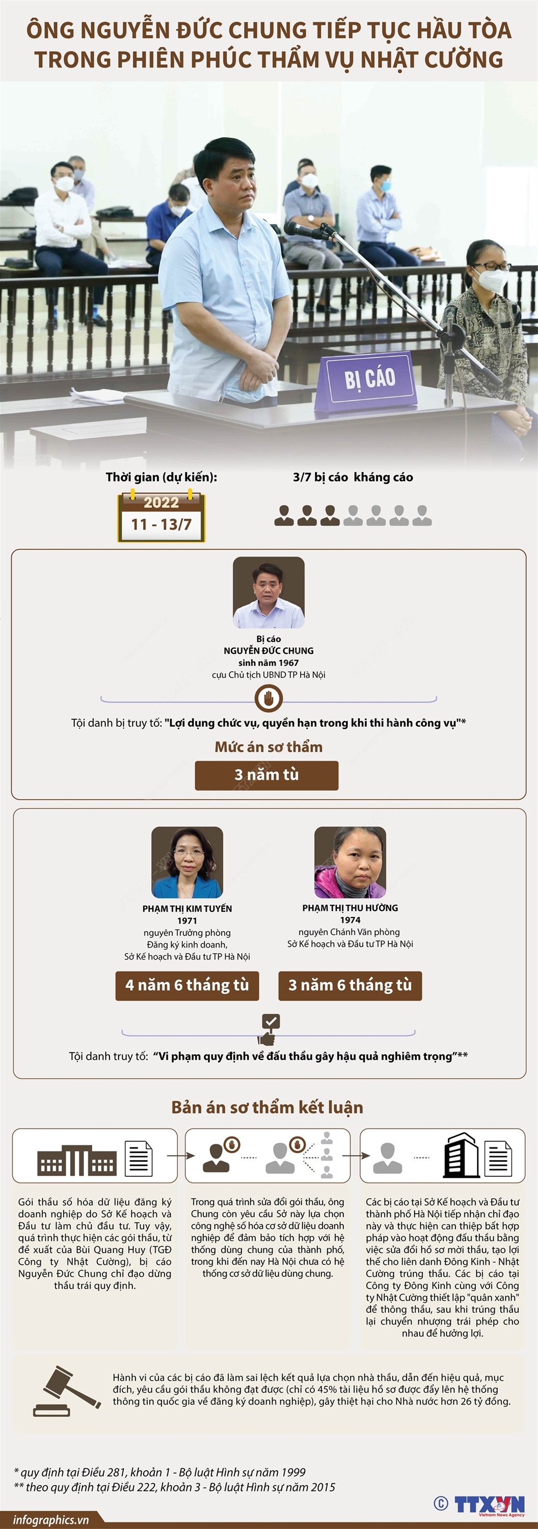 Tin cùng chuyên mục Hà Nội: Chương trình phát triển nhà ở giai đoạn 2021-203015/07/2022 15:56Chương trình phát triển nhà ở TP Hà Nội giai đoạn 2021-2030 xác định, tổng nhu cầu vốn phát triển nhà ở Hà Nội là khoảng 880.000 tỷ đồng, trong đó nhu cầu vốn ngân sách khoảng 11.700 tỷ đồng. Tổng diện tích đất để xây dựng khoảng 1.868ha. Đến năm 2030, diện tích sàn nhà ở bình quân đầu người toàn thành phố đạt 32m2 sàn/người… Tuyển sinh đại học năm 2022: Các mốc thời gian thí sinh cần lưu ý14/07/2022 11:56Thí sinh cần tìm hiểu kỹ thông tin tuyển sinh của các cơ sở đào tạo (CSĐT) trên đề án tuyển sinh của CSĐT và thực hiện các quy định của CSĐT về điều kiện, hồ sơ, quy trình, thời gian dự tuyển. Thí sinh không đăng ký nguyện vọng vào những ngành, chương trình đào tạo hay phương thức tuyển sinh mà không đủ điều kiện; Khai báo đầy đủ và bảo đảm tính... Phúc thẩm vụ Nhật Cường: Bị cáo Nguyễn Đức Chung được giảm án14/07/2022 11:54Chiều 13/7/2022, sau 3 ngày xét xử, Tòa án nhân dân Cấp cao tại Hà Nội đã tuyên án phúc thẩm vụ cựu Chủ tịch UBND thành phố Hà Nội Nguyễn Đức Chung can thiệp đấu thầu để Công ty Nhật Cường trúng hai gói thầu số hóa tại Sở Kế hoạch và Đầu tư thành phố Hà Nội. Theo phán quyết của Tòa phúc thẩm, bị cáo Nguyễn Đức Chung được giảm 1 năm tù (trước đó án... Hà Nội: Chương trình phát triển nhà ở giai đoạn 2021-203014/07/2022 11:53Chương trình phát triển nhà ở TP Hà Nội giai đoạn 2021-2030 xác định, tổng nhu cầu vốn phát triển nhà ở Hà Nội là khoảng 880.000 tỷ đồng, trong đó nhu cầu vốn ngân sách khoảng 11.700 tỷ đồng. Tổng diện tích đất để xây dựng khoảng 1.868ha. Đến năm 2030, diện tích sàn nhà ở bình quân đầu người toàn thành phố đạt 32m2 sàn/người… Ông Nguyễn Đức Chung tiếp tục hầu tòa trong phiên phúc thẩm vụ Nhật Cường12/07/2022 10:51Sáng 11/7/2022, Tòa án nhân dân cấp cao tại Hà Nội mở phiên tòa phúc thẩm, xét đơn kháng cáo của cựu Chủ tịch UBND TP Hà Nội Nguyễn Đức Chung trong vụ án can thiệp đấu thầu, để Công ty Nhật Cường trúng hai gói thầu số hóa tại Sở Kế hoạch và Đầu tư thành phố Hà Nội. Tuyển sinh đại học năm 2022: Các mốc thời gian thí sinh cần lưu ý11/07/2022 09:18Thí sinh cần tìm hiểu kỹ thông tin tuyển sinh của các cơ sở đào tạo (CSĐT) trên đề án tuyển sinh của CSĐT và thực hiện các quy định của CSĐT về điều kiện, hồ sơ, quy trình, thời gian dự tuyển. Thí sinh không đăng ký nguyện vọng vào những ngành, chương trình đào tạo hay phương thức tuyển sinh mà không đủ điều kiện; Khai báo đầy đủ và bảo đảm tính...
