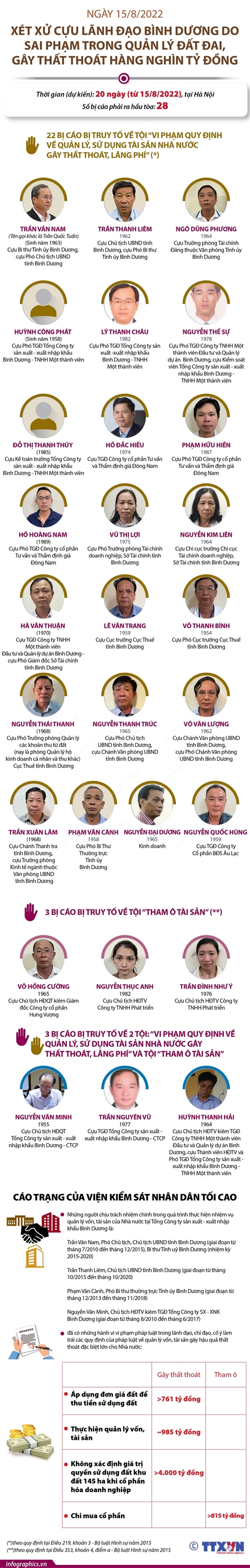Tin cùng chuyên mục Vụ Công ty Việt Á: Các quan chức nào đã bị khởi tố? (Bài 2)25/08/2022 10:33Tính đến ngày 24/8/2022, Cơ quan điều tra các cấp đã khởi tố hơn 90 bị can liên quan đến vụ nâng khống giá sinh phẩm xét nghiệm COVID-19 xảy ra tại Công ty cổ phần công nghệ Việt Á (Công ty Việt Á), Trung tâm kiểm soát bệnh tật tỉnh Hải Dương (CDC Hải Dương) và các đơn vị, địa phương liên quan, trong đó có nhiều quan chức thuộc Bộ Khoa học và Công... Vụ Công ty Việt Á: Các đối tượng tại Công ty Việt Á và các công ty liên quan đã bị khởi tố (Bài 1)25/08/2022 10:20Tính đến ngày 24/8/2022, Cơ quan điều tra các cấp đã khởi tố hơn 90 bị can liên quan đến vụ nâng khống giá sinh phẩm xét nghiệm COVID-19 xảy ra tại Công ty cổ phần công nghệ Việt Á (Công ty Việt Á), Trung tâm kiểm soát bệnh tật tỉnh Hải Dương (CDC Hải Dương) và các đơn vị, địa phương liên quan, trong đó có 12 bị can tại Công ty Việt Á và các công... 4 ngày nghỉ lễ dịp Quốc khánh năm 202225/08/2022 10:19 Kỳ nghỉ Lễ Quốc khánh năm 2022, cán bộ, công chức, viên chức và người lao động của các cơ quan hành chính, sự nghiệp, tổ chức chính trị, tổ chức chính trị-xã hội sẽ được nghỉ 4 ngày liên tục bắt đầu từ thứ Năm - ngày 1/9/2022 đến hết Chủ nhật - ngày 4/9/2022, trong đó có 2 ngày nghỉ lễ Quốc khánh và 2 ngày là ngày nghỉ hàng tuần. 12 nhiệm vụ trọng tâm của ngành Giáo dục năm học 2022-202322/08/2022 11:52Chỉ thị số 1112/CT-BGDĐT về việc thực hiện nhiệm vụ trọng tâm năm học 2022-2023 của Bộ Giáo dục và Đào tạo xác định chủ đề năm học mới là “Đoàn kết, sáng tạo, ra sức phấn đấu hoàn thành tốt các nhiệm vụ và mục tiêu đổi mới, củng cố và nâng cao chất lượng giáo dục và đào tạo”. Bộ Giáo dục và Đào tạo yêu cầu toàn ngành tập trung thực hiện 12 nhiệm vụ... Hỗ trợ đến 3,7 triệu đồng cho cán bộ quản lý, giáo viên, nhân viên trường ngoài công lập bị ảnh hưởng bởi COVID-1915/08/2022 15:11Chính phủ mới ban hành Nghị quyết số 103/NQ-CP quyết nghị thực hiện chính sách hỗ trợ cán bộ quản lý, giáo viên, nhân viên trong các cơ sở giáo dục Mầm non, giáo dục Tiểu học ngoài công lập gặp khó khăn do đại dịch COVID-19. Nghị quyết nêu rõ, hỗ trợ một lần mức 3,7 triệu đồng/người áp dụng với cán bộ quản lý, giáo viên, nhân viên chưa được hưởng... Cựu Bí thư Tỉnh ủy Bình Dương Trần Văn Nam và 27 bị cáo khác bị xét xử về những tội gì?15/08/2022 15:10Sáng 15/8/2022, Tòa án nhân dân TP Hà Nội mở phiên tòa xét xử 28 bị cáo trong vụ án sai phạm trong quản lý, sử dụng đất đai xảy ra tại tỉnh Bình Dương. Trong vụ án này, cựu Bí thư Tỉnh ủy Bình Dương Trần Văn Nam và 27 bị cáo khác bị Viện Kiểm sát Tối cao truy tố về hai tội danh: “Vi phạm quy định về quản lý, sử dụng tài sản Nhà nước gây thất thoát,...