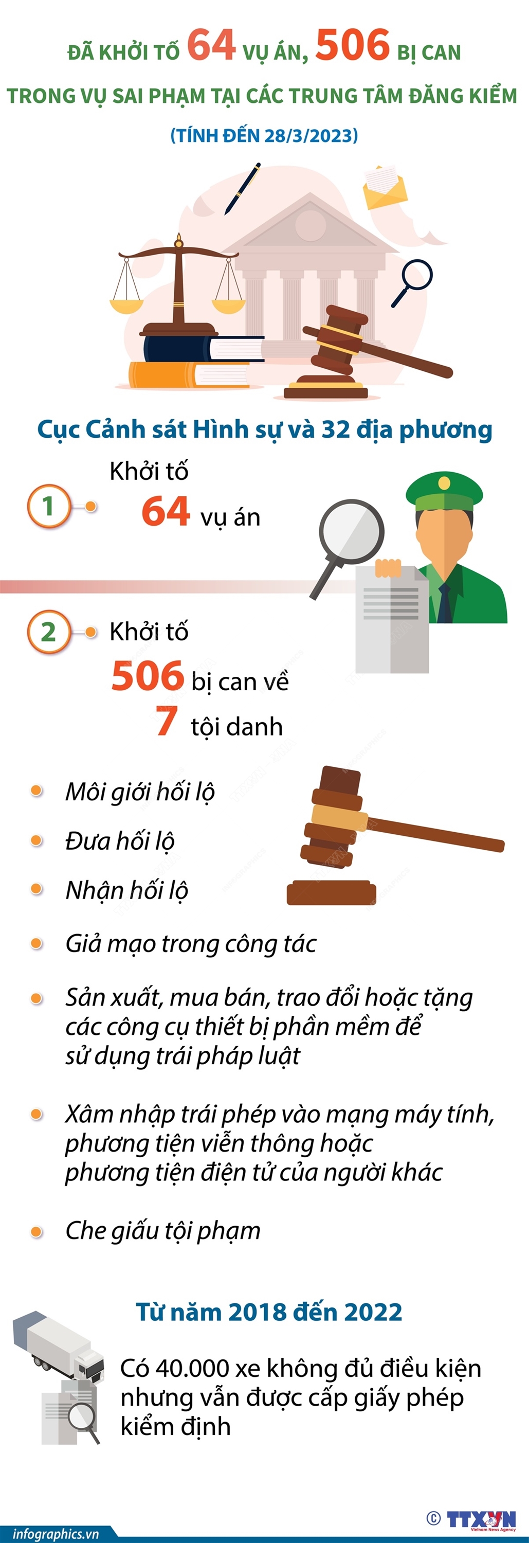 Tin cùng chuyên mục Từ tháng 4/2023: Bảo hiểm xã hội Hà Nội trả lương hưu hằng tháng thành hai đợt04/04/2023 09:53Từ tháng 4/2023, Bảo hiểm xã hội thành phố Hà Nội triển khai lập danh sách chi trả lương hưu, trợ cấp bảo hiểm xã hội thành hai đợt. Việc làm này giúp người mới nhận quyết định, được hưởng ngay chế độ trong tháng đó mà không phải đợi tới tháng sau. Mặt khác, việc chi trả thành 2 đợt cũng giúp Bảo hiểm xã hội phối hợp với Bưu điện thành phố có thời... Từ 1/4, COVID-19 là bệnh nghề nghiệp được hưởng bảo hiểm xã hội04/04/2023 09:52Bệnh COVID-19 nghề nghiệp là bệnh phát sinh trong quá trình lao động do người lao động phải tiếp xúc với virus SARS-CoV-2 có trong môi trường lao động. Từ 1/4/2023, bệnh COVID-19 nghề nghiệp là bệnh nghề nghiệp thứ 35 được hưởng bảo hiểm xã hội. Bệnh COVID-19 nghề nghiệp là gì?04/04/2023 09:51Từ 1/4/2023, Thông tư 02/2023/TT-BYT ngày 9/2/2023 sửa đổi, bổ sung một số điều của Thông tư 15/2016/TT-BYT ngày 15/5/2016 của Bộ Y tế quy định về bệnh nghề nghiệp được hưởng bảo hiểm xã hội chính thức có hiệu lực. Thông tư 02/2023/TT-BYT đã bổ sung bệnh COVID-19 nghề nghiệp vào danh mục bệnh nghề nghiệp được hưởng bảo hiểm xã hội. Vậy bệnh... Từ 1/4/2023, thuê bao di động chưa chuẩn hóa thông tin sẽ bị khóa một chiều04/04/2023 09:51Ngày 31/3/2023 là hạn cuối để chủ các thuê bao di động thực hiện chuẩn hóa thông tin. Những thuê bao nhận được đề nghị chuẩn hóa thông tin cần tiến hành chuẩn hóa để đảm bảo quyền lợi của chủ thuê bao. Nếu sau ngày 31/3/2023, khách hàng chưa chuẩn hóa thông tin sẽ bị khóa thuê bao và sau hai tháng sẽ chấm dứt hợp đồng nếu thuê bao không đăng ký... Hơn 700 đối tượng phạm tội về tham nhũng, chức vụ trong quý I/202329/03/2023 08:39Trong quý I/2023, lực lượng Công an phát hiện 218 vụ, 708 người phạm tội về tham nhũng và chức vụ. Thông tin trên được Bộ Công an cho biết chiều 28/3/2023, tại cuộc họp báo về tình hình, kết quả các mặt công tác công an quý I/2023, nhiệm vụ công tác trọng tâm thời gian tới. Đã khởi tố 64 vụ án, 506 bị can trong vụ sai phạm tại các Trung tâm Đăng kiểm29/03/2023 08:39Liên quan đến việc xử lý sai phạm tại các Trung tâm Đăng kiểm, tại họp báo chiều 28/3/2023, Trung tướng Tô Ân Xô, Người Phát ngôn Bộ Công an cho biết, Cục Cảnh sát Hình sự và 32 địa phương đã khởi tố 64 vụ án, 506 bị can về 7 tội danh khác nhau.