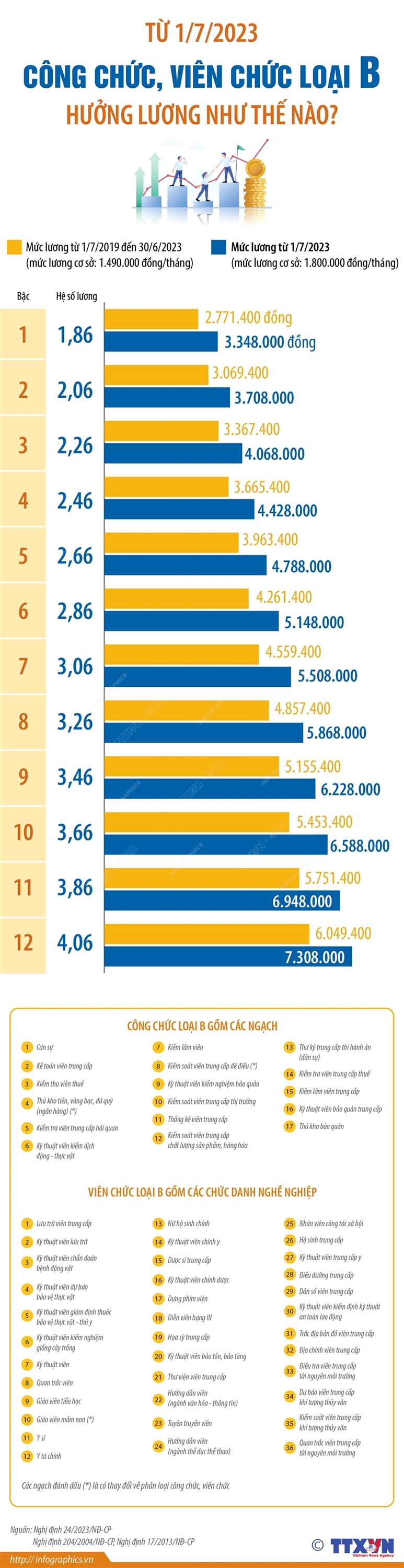 Tin cùng chuyên mục Từ 1/7/2023 đến 31/12/2023: Thực hiện giảm 2% thuế suất thuế GTGT11/07/2023 15:41Quốc hội đã thông qua Nghị quyết Kỳ họp thứ 5, Quốc hội XV. Trong Nghị quyết này có quy định về việc Thực hiện giảm 2% thuế suất thuế giá trị gia tăng quy định tại tiết a, điểm 1.1, khoản 1 Điều 3 của Nghị quyết số 43/2022/QH15 ngày 11/01/2022 của Quốc hội về chính sách tài khóa, tiền tệ hỗ trợ Chương trình phục hồi và phát triển kinh tế-xã hội... Từ 1/7/2023: Công chức, viên chức loại A3 hưởng lương như thế nào?11/07/2023 15:41Dưới đây là chi tiết mức lương của công chức, viên chức loại A3 từ ngày 1/7/2023. Từ 1/7/2023: Công chức, viên chức loại A1 hưởng lương như thế nào?11/07/2023 15:40Dưới đây là chi tiết mức lương của công chức, viên chức loại A1 từ ngày 1/7/2023. Từ 1/7/2023: Công chức, viên chức loại A0 hưởng lương như thế nào?11/07/2023 15:40Dưới đây là chi tiết mức lương của công chức, viên chức loại A0 từ ngày 1/7/2023. Từ 1/7/2023: Công chức, viên chức loại C hưởng lương như thế nào?11/07/2023 15:40Dưới đây là chi tiết mức lương của công chức, viên chức loại C từ ngày 1/7/2023. Từ 1/7/2023: Công chức, viên chức loại B hưởng lương như thế nào?11/07/2023 15:40Dưới đây là chi tiết mức lương của công chức, viên chức loại B từ ngày 1/7/2023.