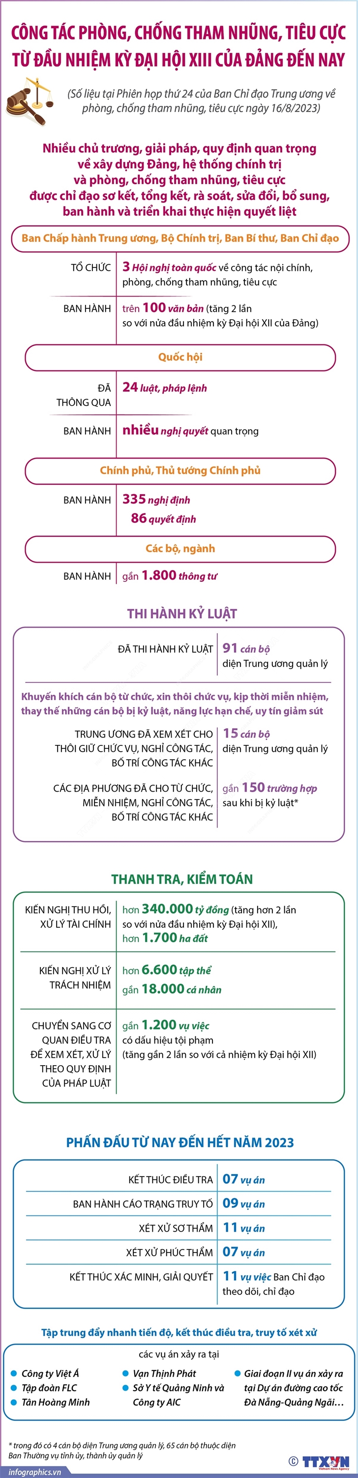 Tin cùng chuyên mục Phiên đấu giá trực tuyến biển số xe ô tô lần thứ nhất tổ chức vào ngày 22/8/202322/08/2023 16:14Trong phiên đấu giá trực tuyến biển số xe ô tô đầu tiên được tổ chức vào ngày 22/8/2023, có 11 biển số đẹp được đưa lên sàn đấu giá. 13 cửa khẩu đường biển cho phép người nước ngoài nhập cảnh, xuất cảnh bằng thị thực điện tử từ 15/8/202322/08/2023 16:14Ngày 14/8/2023, Chính phủ ban hành Nghị quyết 127/NQ-CP về việc áp dụng cấp thị thực điện tử cho công dân các nước, vùng lãnh thổ các cửa khẩu quốc tế cho phép người nước ngoài nhập cảnh, xuất cảnh bằng thị thực điện tử. Theo đó cấp thị thực điện tử cho công dân tất cả các nước, vùng lãnh thổ từ ngày 15/8/2023. Dưới đây là danh sách 13 cửa khẩu... 16 cửa khẩu đường bộ cho phép người nước ngoài nhập cảnh, xuất cảnh bằng thị thực điện tử từ 15/8/202322/08/2023 16:14Ngày 14/8/2023, Chính phủ ban hành Nghị quyết 127/NQ-CP về việc áp dụng cấp thị thực điện tử cho công dân các nước, vùng lãnh thổ các cửa khẩu quốc tế cho phép người nước ngoài nhập cảnh, xuất cảnh bằng thị thực điện tử. Theo đó cấp thị thực điện tử cho công dân tất cả các nước, vùng lãnh thổ từ ngày 15/8/2023. Dưới đây là danh sách 16 cửa khẩu... 13 cửa khẩu đường hàng không cho phép người nước ngoài nhập cảnh, xuất cảnh bằng thị thực điện tử từ 15/8/202322/08/2023 16:14Ngày 14/8/2023, Chính phủ ban hành Nghị quyết 127/NQ-CP về việc áp dụng cấp thị thực điện tử cho công dân các nước, vùng lãnh thổ các cửa khẩu quốc tế cho phép người nước ngoài nhập cảnh, xuất cảnh bằng thị thực điện tử. Theo đó cấp thị thực điện tử cho công dân tất cả các nước, vùng lãnh thổ từ ngày 15/8/2023. Dưới đây là danh sách 13 cửa khẩu... Công tác phòng, chống tham nhũng, tiêu cực từ đầu nhiệm kỳ đại hội XIII của Đảng đến nay17/08/2023 14:34Ngày 16/8/2023, tại Hà Nội, Ban Chỉ đạo Trung ương về phòng, chống tham nhũng, tiêu cực (Ban Chỉ đạo) đã họp Phiên thứ 24 để thảo luận, cho ý kiến về kết quả hoạt động của Ban Chỉ đạo 6 tháng đầu năm 2023 và nhìn lại công tác phòng, chống tham nhũng, tiêu cực từ đầu nhiệm kỳ Đại hội XIII của Đảng đến nay xác định nhiệm vụ trọng tâm công tác những... Chiến lược quốc gia về thu hút, trọng dụng nhân tài đến năm 2030, tầm nhìn đến năm 205017/08/2023 14:34Mục tiêu tổng quát của Chiến lược quốc gia về thu hút, trọng dụng nhân tài đến năm 2030, tầm nhìn đến năm 2050 là xây dựng và thực hiện có hiệu quả các chính sách, giải pháp mạnh, đột phá để thu hút và trọng dụng nhân tài (cả trong nước và ngoài nước) đến năm 2030, tầm nhìn đến 2050, đặc biệt trong các ngành, lĩnh vực mũi nhọn như: Khoa học và công...