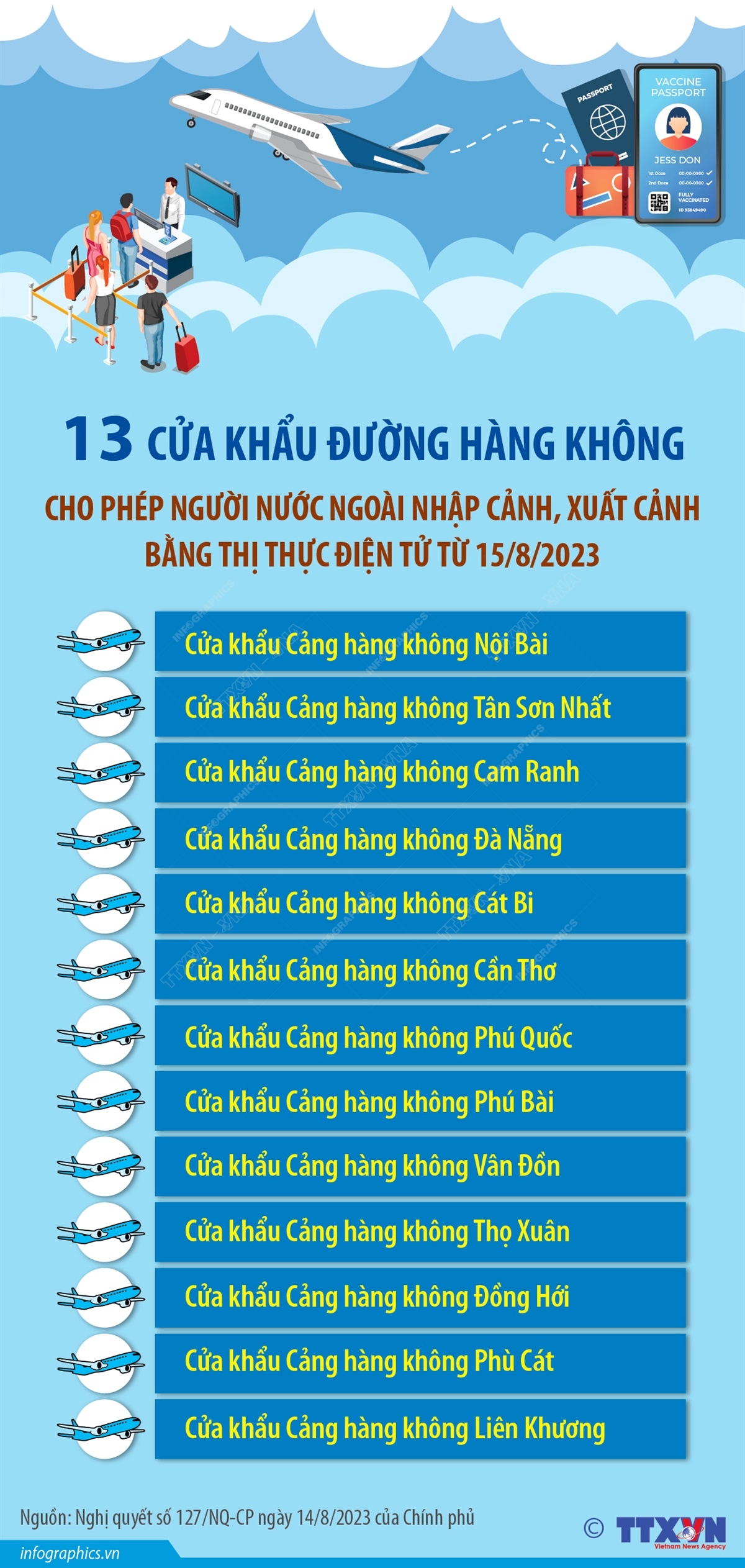 Tin cùng chuyên mục Bảo hiểm Xã hội Việt Nam đẩy mạnh giải quyết thủ tục hành chính qua dịch vụ công liên thông28/08/2023 15:17Triển khai Đề án phát triển ứng dụng dữ liệu về dân cư, định danh và xác thực điện tử phục vụ chuyển đổi số quốc gia giai đoạn 2022-2025, tầm nhìn đến năm 2030 (Đề án 06), Bảo hiểm Xã hội Việt Nam cho biết, đã có trên 90,1 triệu thông tin nhân khẩu có trong Cơ sở dữ liệu quốc gia về bảo hiểm được xác thực với Cơ sở dữ liệu quốc gia về dân cư. Đồng... Các bước xác nhận nhập học đại học trực tuyến 202322/08/2023 16:14Theo hướng dẫn của Bộ Giáo dục và Đào tạo, tất cả thí sinh xét tuyển đại học năm 2023 phải xác nhận nhập học trực tuyến trên Hệ thống, thời gian từ ngày 22/8 đến trước 17h ngày 6/9/2023. Phiên đấu giá trực tuyến biển số xe ô tô lần thứ nhất tổ chức vào ngày 22/8/202322/08/2023 16:14Trong phiên đấu giá trực tuyến biển số xe ô tô đầu tiên được tổ chức vào ngày 22/8/2023, có 11 biển số đẹp được đưa lên sàn đấu giá. 13 cửa khẩu đường biển cho phép người nước ngoài nhập cảnh, xuất cảnh bằng thị thực điện tử từ 15/8/202322/08/2023 16:14Ngày 14/8/2023, Chính phủ ban hành Nghị quyết 127/NQ-CP về việc áp dụng cấp thị thực điện tử cho công dân các nước, vùng lãnh thổ các cửa khẩu quốc tế cho phép người nước ngoài nhập cảnh, xuất cảnh bằng thị thực điện tử. Theo đó cấp thị thực điện tử cho công dân tất cả các nước, vùng lãnh thổ từ ngày 15/8/2023. Dưới đây là danh sách 13 cửa khẩu... 16 cửa khẩu đường bộ cho phép người nước ngoài nhập cảnh, xuất cảnh bằng thị thực điện tử từ 15/8/202322/08/2023 16:14Ngày 14/8/2023, Chính phủ ban hành Nghị quyết 127/NQ-CP về việc áp dụng cấp thị thực điện tử cho công dân các nước, vùng lãnh thổ các cửa khẩu quốc tế cho phép người nước ngoài nhập cảnh, xuất cảnh bằng thị thực điện tử. Theo đó cấp thị thực điện tử cho công dân tất cả các nước, vùng lãnh thổ từ ngày 15/8/2023. Dưới đây là danh sách 16 cửa khẩu... 13 cửa khẩu đường hàng không cho phép người nước ngoài nhập cảnh, xuất cảnh bằng thị thực điện tử từ 15/8/202322/08/2023 16:14Ngày 14/8/2023, Chính phủ ban hành Nghị quyết 127/NQ-CP về việc áp dụng cấp thị thực điện tử cho công dân các nước, vùng lãnh thổ các cửa khẩu quốc tế cho phép người nước ngoài nhập cảnh, xuất cảnh bằng thị thực điện tử. Theo đó cấp thị thực điện tử cho công dân tất cả các nước, vùng lãnh thổ từ ngày 15/8/2023. Dưới đây là danh sách 13 cửa khẩu...