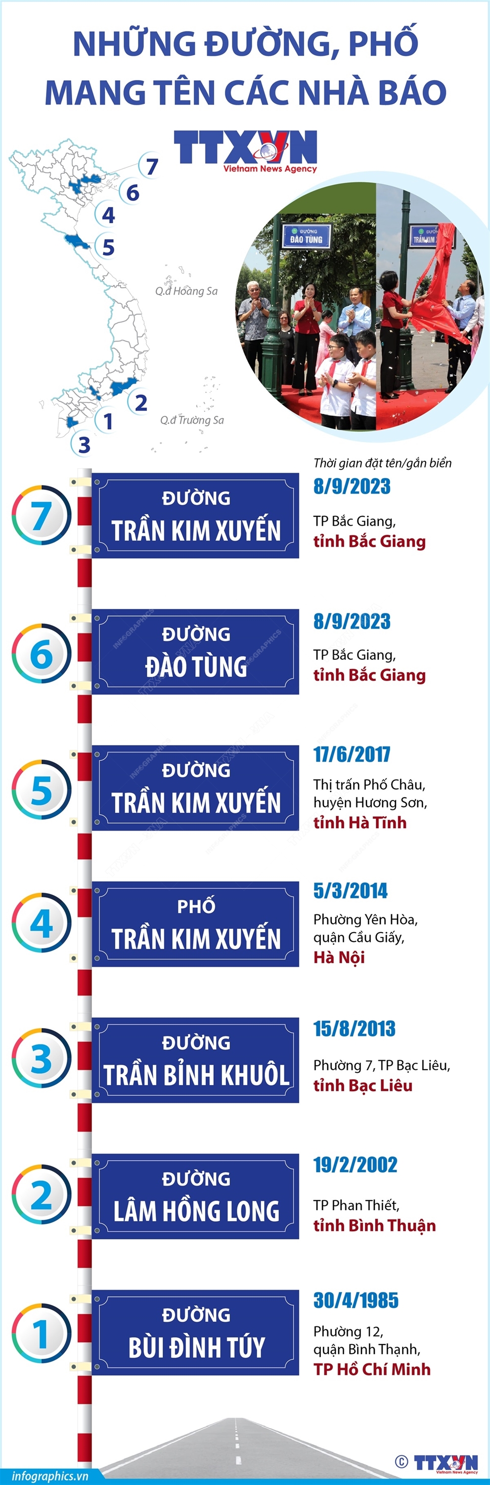 Tin cùng chuyên mục Các trường hợp ô tô thuộc diện phải triệu hồi từ 1/10/202306/10/2023 15:35Chính phủ ban hành Nghị định 60/2023/NĐ-CP ngày 16/8/2023 quy định về việc kiểm tra, chứng nhận chất lượng an toàn kỹ thuật và bảo vệ môi trường ô tô nhập khẩu và linh kiện nhập khẩu theo các Điều ước quốc tế mà Việt Nam là thành viên. Trong đó, Nghị định quy định các trường hợp ô tô thuộc diện phải triệu hồi từ 1/10/2023: Ô tô triệu hồi theo công... 4 thủ tục hành chính được ban hành mới trong lĩnh vực đăng kiểm từ 1/10/202306/10/2023 15:35Ngày 8/9/2023, Bộ Giao thông Vận tải đã ban hành Quyết định 1137/QĐ-BGTVT về việc công bố 4 thủ tục hành chính được ban hành mới trong lĩnh vực đăng kiểm thuộc phạm vi chức năng quản lý của Bộ Giao thông vận tải, bao gồm: Cấp Giấy chứng nhận chất lượng an toàn kỹ thuật và bảo vệ môi trường xe cơ giới nhập khẩu, Cấp Thông báo miễn kiểm tra chất... Mở lại phiên đấu giá biển số đẹp vào ngày 15/9/202315/09/2023 15:43Công ty Đấu giá hợp danh Việt Nam, đơn vị được Bộ Công an lựa chọn tổ chức đấu giá biển số xe ô tô, vừa ra thông báo về việc tổ chức đấu giá lại phiên đấu giá lần thứ nhất vào ngày 15/9/2023. Theo đó, 11 biển số xe ô tô số đẹp của 10 tỉnh, thành sẽ được đưa ra đấu giá. 78 năm Thông tấn xã Việt Nam (15/9/1945 - 15/9/2023): Những mốc son tự hào14/09/2023 16:33Ngày 15/9/1945, bản Tuyên ngôn Độc lập khai sinh ra nước Việt Nam Dân chủ cộng hòa (nay là CHXHCN Việt Nam) được phát đi toàn thế giới bằng 3 thứ tiếng Việt, Pháp, Anh - đánh dấu sự ra đời của Việt Nam Thông tấn xã (nay là Thông tấn xã Việt Nam), hãng thông tấn đầu tiên trong lịch sử Việt Nam. Trải qua 78 năm phát triển (15/9/1945-15/9/2023), Thông... Từ 15/9/2023: Cảnh sát giao thông được dừng xe những trường hợp nào?11/09/2023 08:39Theo Thông tư 32/2023/TT-BCA quy định nhiệm vụ, quyền hạn, hình thức, nội dung và quy trình tuần tra, kiểm soát, xử lý vi phạm hành chính về giao thông đường bộ của Cảnh sát giao thông, từ ngày 15/9/2023, cán bộ Cảnh sát giao thông thực hiện nhiệm vụ tuần tra, kiểm soát theo kế hoạch được dừng phương tiện giao thông để kiểm soát trong các trường... Những đường, phố mang tên các nhà báo thông tấn11/09/2023 08:39Nhân dịp kỷ niệm 78 năm Ngày thành lập Thông tấn xã Việt Nam (15/9/1945-15/9/2023), sáng 8/9/2023, tại thành phố Bắc Giang, Thông tấn xã Việt Nam (TTXVN) phối hợp với tỉnh Bắc Giang tổ chức Lễ gắn biển tên đường Trần Kim Xuyến và đường Đào Tùng. Đây là hai nhà báo của TTXVN có nhiều đóng góp cho sự nghiệp báo chí của ngành cũng như nền báo chí cách...