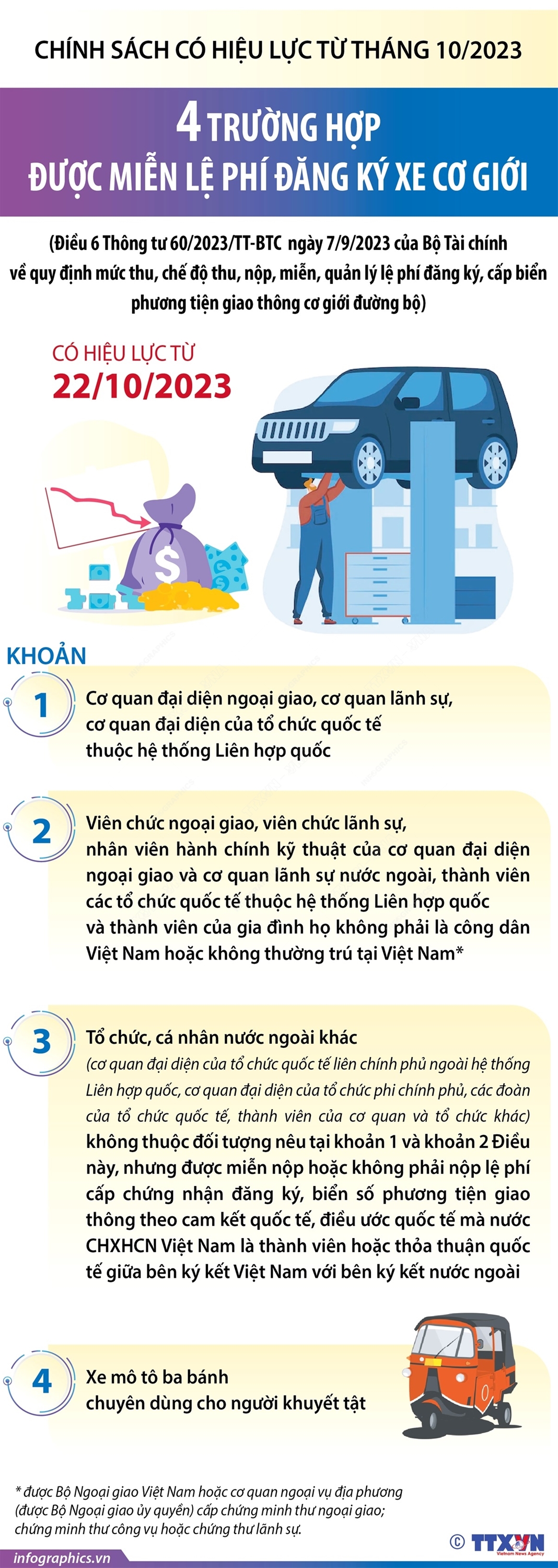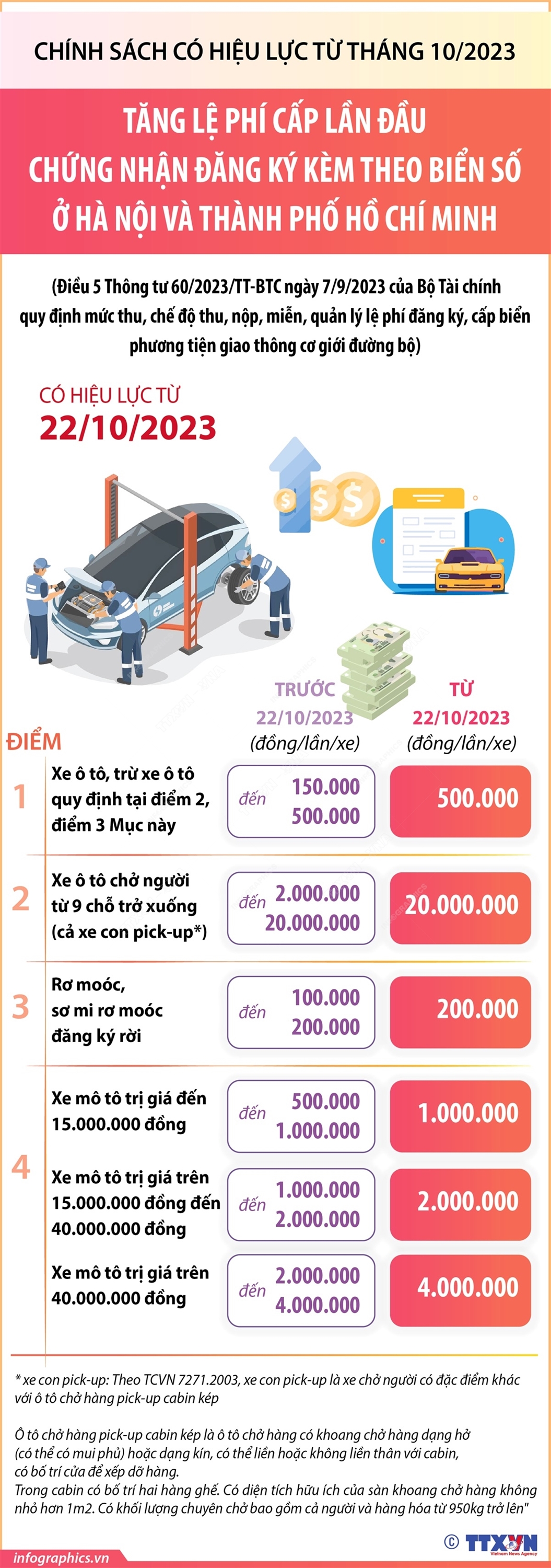 Tin cùng chuyên mục 5 giải pháp thực hiện cải cách tiền lương đồng bộ từ ngày 1/7/202415/11/2023 15:15Bộ Nội vụ nêu 5 giải pháp chủ yếu để thực hiện cải cách chính sách tiền lương đồng bộ, kịp thời vào thời điểm từ ngày 1/7/2024, trong đó nội dung đầu tiên là trình cấp có thẩm quyền thông qua danh mục vị trí việc làm cán bộ, công chức, viên chức trong hệ thống chính trị từ Trung ương đến cấp xã Hà Nội quy định diện tích đỗ xe tối thiếu đối với chung cư mini15/11/2023 15:15Chủ tịch UBND TP Hà Nội vừa ký văn bản số 3690/UBND-SXD về việc tăng cường thực hiện quy định của pháp luật về xây dựng, kiểm soát an toàn nhà chung cư cũ, nhà ở riêng lẻ nhiều tầng, nhiều căn hộ (thường gọi là chung cư mini). Trong đó, UBND Hà Nội yêu cầu UBND các quận, huyện, thị xã tổ chức triển khai ngay các giải pháp để giảm thiểu nguy cơ mất... Quy chế thi chọn học sinh giỏi cấp quốc gia15/11/2023 15:15Bộ Giáo dục và Đào tạo (GDĐT) vừa ban hành Thông tư số 17/2023/TT-BGDĐT ngày 10/10/2023 Quy chế thi chọn học sinh giỏi quốc gia thay thể Thông tư số 56/2011/TT-BGDĐT. Theo đó, Thông tư 17 quy định số lượng thí sinh của các đơn vị tối đa là 10 thí sinh riêng thành phố Hồ Chí Minh và Hà Nội 20 thí sinh. Về ra đề thi, chấm thi về tiêu chuẩn, điều kiện... Siết chặt phòng cháy chữa cháy nhà ở riêng lẻ có nhiều tầng, nhiều căn hộ24/10/2023 08:53Theo Công điện số 991/CĐ-TTg ngày 22/10/2023 về tăng cường công tác quản lý trật tự xây dựng và phòng cháy, chữa cháy đối với nhà ở riêng lẻ có nhiều tầng, nhiều căn hộ, bảo đảm an toàn, bảo vệ tài sản, sức khỏe, tính mạng của nhân dân, Thủ tướng yêu cầu Bộ Công an tiếp tục rà soát, kiểm tra an toàn phòng cháy, chữa cháy, kịp thời phát hiện, xử lý... 4 trường hợp được miễn lệ phí đăng ký xe cơ giới từ 22/10/202324/10/2023 08:53Theo Thông tư 60/2023/TT-BTC ngày 7/9/2023 của Bộ Tài chính về quy định mức thu, chế độ thu, nộp, miễn, quản lý lệ phí đăng ký, cấp biển phương tiện giao thông cơ giới đường bộ, từ 22/10/2023, có 4 trường hợp sau được miễn lệ phí đăng ký xe cơ giới. Từ 22/10/2023, tăng lệ phí cấp lần đầu chứng nhận đăng ký kèm theo biển số ở Hà Nội và Thành phố Hồ Chí Minh24/10/2023 08:53Bộ Tài chính đã ban hành Thông tư 60/2023/TT-BTC ngày 7/9/2023 về quy định mức thu, chế độ thu, nộp, miễn, quản lý lệ phí đăng ký, cấp biển phương tiện giao thông cơ giới đường bộ. Thông tư điều chỉnh tăng mức thu lệ phí cấp lần đầu chứng nhận đăng ký kèm theo biển số phương tiện giao thông ở khu vực I (gồm thành phố Hà Nội và Thành phố Hồ Chí...