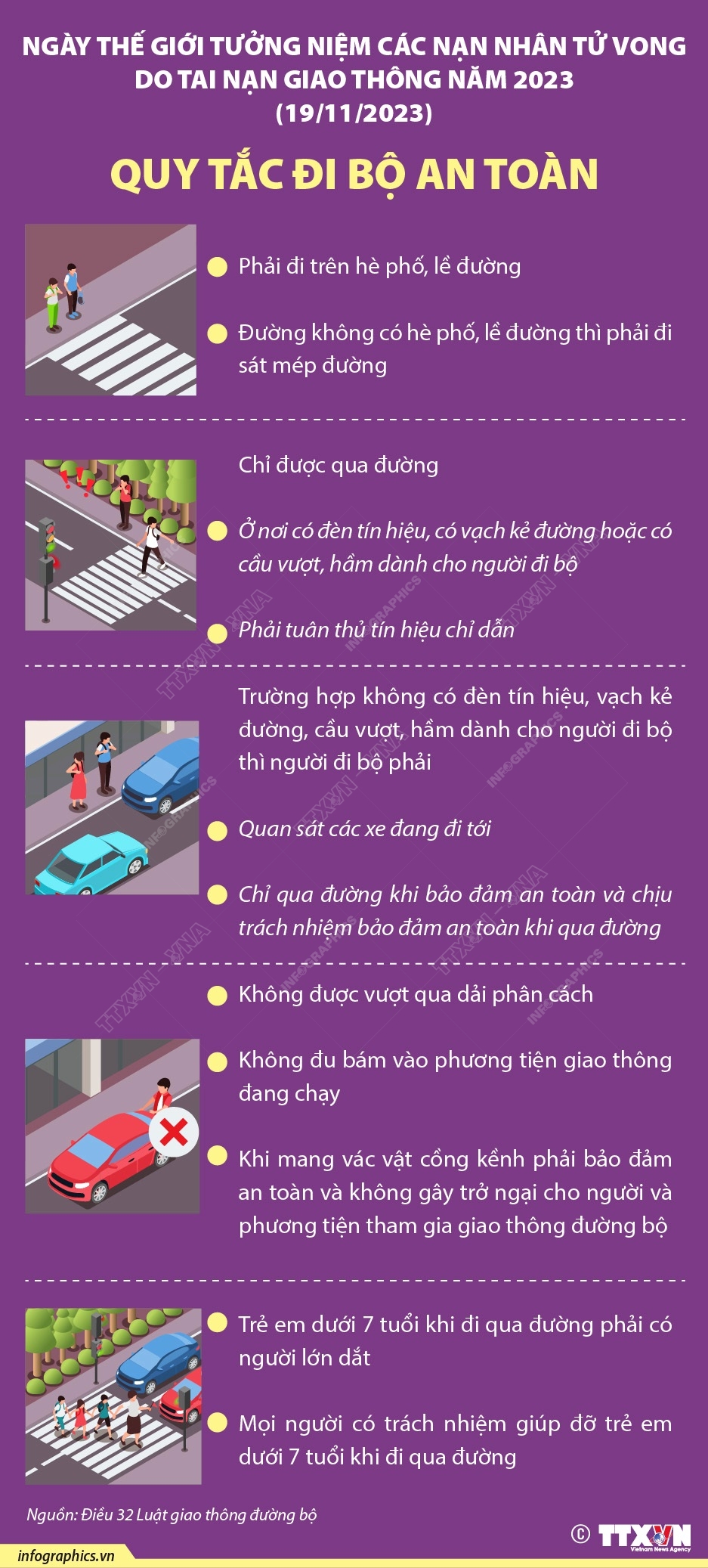 Tin cùng chuyên mục Phấn đấu đưa Thủ đô Hà Nội gia nhập vào mạng lưới “Thành phố học tập” của UNESCO (phần 1)30/11/2023 10:24Bí thư Thành ủy Hà Nội Đinh Tiến Dũng vừa ký ban hành Nghị quyết số 23-NQ/TU về tăng cường sự lãnh đạo của Đảng đối với công tác khuyến học, khuyến tài, xây dựng xã hội học tập trên địa bàn thành phố từ nay đến năm 2030, tầm nhìn đến năm 2045. Nghị quyết đề ra mục tiêu tổng quát: Đáp ứng nhu cầu học tập ngày càng cao của nhân dân Thủ đô, góp phần... Nâng cao nhận thức của các cấp chính quyền địa phương và hiểu biết của nhân viên y tế, thú y và người dân về phòng, chống kháng thuốc30/11/2023 10:23Từ ngày 20-21/11/2023, Bộ Y tế phối hợp với Bộ Nông nghiệp và Phát triển nông thôn, Bộ Tài nguyên và Môi trường, Bộ Công Thương và Tổ chức Y tế thế giới, Tổ chức FHI 360 và các đối tác tổ chức Hội nghị triển khai Chiến lược quốc gia về phòng, chống kháng thuốc tại Việt Nam giai đoạn 2023-2030, tầm nhìn đến năm 2045 và hưởng ứng "Tuần lễ thế giới... Từ 17/11/2023: Tăng giá dịch vụ khám bảo hiểm y tế30/11/2023 10:23Bộ Y tế đã ban hành Thông tư 22/2023/TT-BYT ngày 17/11/2023 quy định thống nhất giá dịch vụ khám bệnh, chữa bệnh bảo hiểm y tế giữa các bệnh viện cùng hạng trong toàn quốc và hướng dẫn áp dụng giá, thanh toán chi phí khám bệnh, chữa bệnh bảo hiểm y tế trong một số trường hợp. Theo đó, giá khám bệnh BHYT tại bệnh viện hạng đặc biệt như Bạch Mai,... Các hành vi được coi là bạo lực gia đình30/11/2023 10:23Tháng hành động vì bình đẳng giới và phòng ngừa, ứng phó với bạo lực trên cơ sở giới năm 2023 được tổ chức từ ngày 15/11 đến 15/12/2023, nhằm nâng cao nhận thức của mọi người về bình đẳng giới và xóa bỏ bạo lực trên cơ sở giới, đảm bảo an sinh xã hội. Bạo lực gia đình là hành vi cố ý của thành viên gia đình gây tổn hại hoặc có khả năng gây tổn hại... Quy tắc đi xe mô tô, xe gắn máy an toàn30/11/2023 10:23Để phòng tránh tai nạn giao thông nhằm bảo vệ sức khỏe và tính mạng của chính mình, mỗi người điều khiển, người ngồi trên xe mô tô hai bánh, xe mô tô ba bánh, xe gắn máy phải có ý thức trách nhiệm trong việc chấp hành các quy định của pháp luật, các quy tắc an toàn khi tham gia giao thông. Quy tắc đi bộ an toàn30/11/2023 10:23Đã có nhiều vụ tai nạn giao thông liên quan đến người đi bộ qua đường không đúng quy định, gây hậu quả nghiêm trọng. Để phòng tránh tai nạn giao thông, người đi bộ cần nắm vững các quy tắc an toàn giao thông sau: