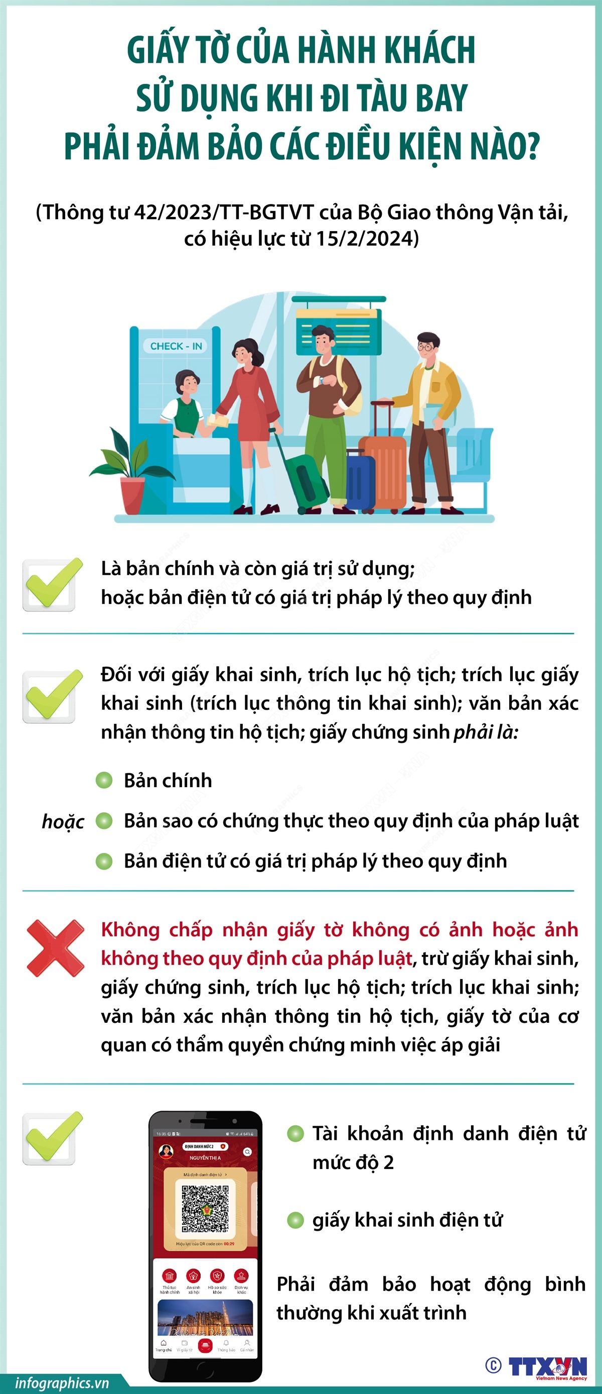 Tin cùng chuyên mục Mục tiêu đến năm 2030, sản lượng hồ tiêu đạt 0,18 - 0,23 triệu tấn16/02/2024 15:06Theo Đề án phát triển cây công nghiệp chủ lực đến năm 2030, Bộ Nông nghiệp và Phát triển nông đặt mục tiêu đến năm 2030, tổng diện tích hồ tiêu cả nước khoảng 80 - 100 nghìn ha; sản lượng hồ tiêu đạt 0,18 - 0,23 triệu tấn... Mục tiêu đến năm 2030, diện tích cao su của cả nước khoảng 800 - 850 nghìn ha16/02/2024 15:06Theo Đề án phát triển cây công nghiệp chủ lực đến năm 2030, Bộ Nông nghiệp và Phát triển nông đặt mục tiêu đến năm 2030, tổng diện tích cao su cả nước đạt khoảng 800 - 850 nghìn ha; 100% lượng mủ và gỗ cao su có mã số vùng trồng truy xuất nguồn gốc sản phẩm... Mục tiêu đến năm 2030: 100% các hồ tự nhiên được đánh giá nguồn lợi thủy sản16/02/2024 15:06Mục tiêu chung của Chương trình quốc gia Bảo vệ và Phát triển nguồn lợi thủy sản đến năm 2030 là bảo tồn, bảo vệ, tái tạo nguồn lợi thủy sản nhằm phục hồi và sử dụng hợp lý, hiệu quả nguồn lợi thủy sản và các hệ sinh thái thủy sinh; gắn hoạt động tuần tra, kiểm tra, kiểm soát, quản lý nguồn lợi thuỷ sản với hoạt động khai thác thủy sản bền vững,... Năm 2024: Hà Nội đặt mục tiêu có 4 huyện đạt chuẩn nông thôn mới nâng cao16/02/2024 15:06Năm 2024, thành phố Hà Nội đề ra mục tiêu hoàn thành nhiệm vụ xây dựng nông thôn mới và có ít nhất 4 huyện được Thủ tướng Chính phủ công nhận huyện đạt chuẩn nông thôn mới nâng cao. Khuyến cáo về di chuyển để đảm bảo an toàn giao thông sau kỳ nghỉ Tết16/02/2024 15:06Theo Công an thành phố Hà Nội, kỳ nghỉ Tết Nguyên đán Giáp Thìn 2024, cán bộ, công chức và người lao động được nghỉ từ ngày 8/2 (tức ngày 29 tháng Chạp năm Quý Mão) đến hết ngày 14/2/2024 (tức ngày mùng 5 tháng Giêng năm Giáp Thìn). Trong các ngày mùng 4, mùng 5 Tết Nguyên đán, đông đảo người dân và phương tiện giao thông trở lại thành phố bắt đầu... Giấy tờ của hành khách sử dụng khi đi tàu bay phải đảm bảo các điều kiện nào?16/02/2024 15:06Theo Thông tư 42/2023/TT-BGTVT của Bộ Giao thông Vận tải, từ 15/2/2024, Giấy tờ của hành khách sử dụng khi đi tàu bay phải đảm bảo các điều kiện: Là bản chính và còn giá trị sử dụng; hoặc bản điện tử có giá trị pháp lý theo quy định; Đối với giấy khai sinh, trích lục hộ tịch; trích lục giấy khai sinh (trích lục thông tin khai sinh); văn bản xác...