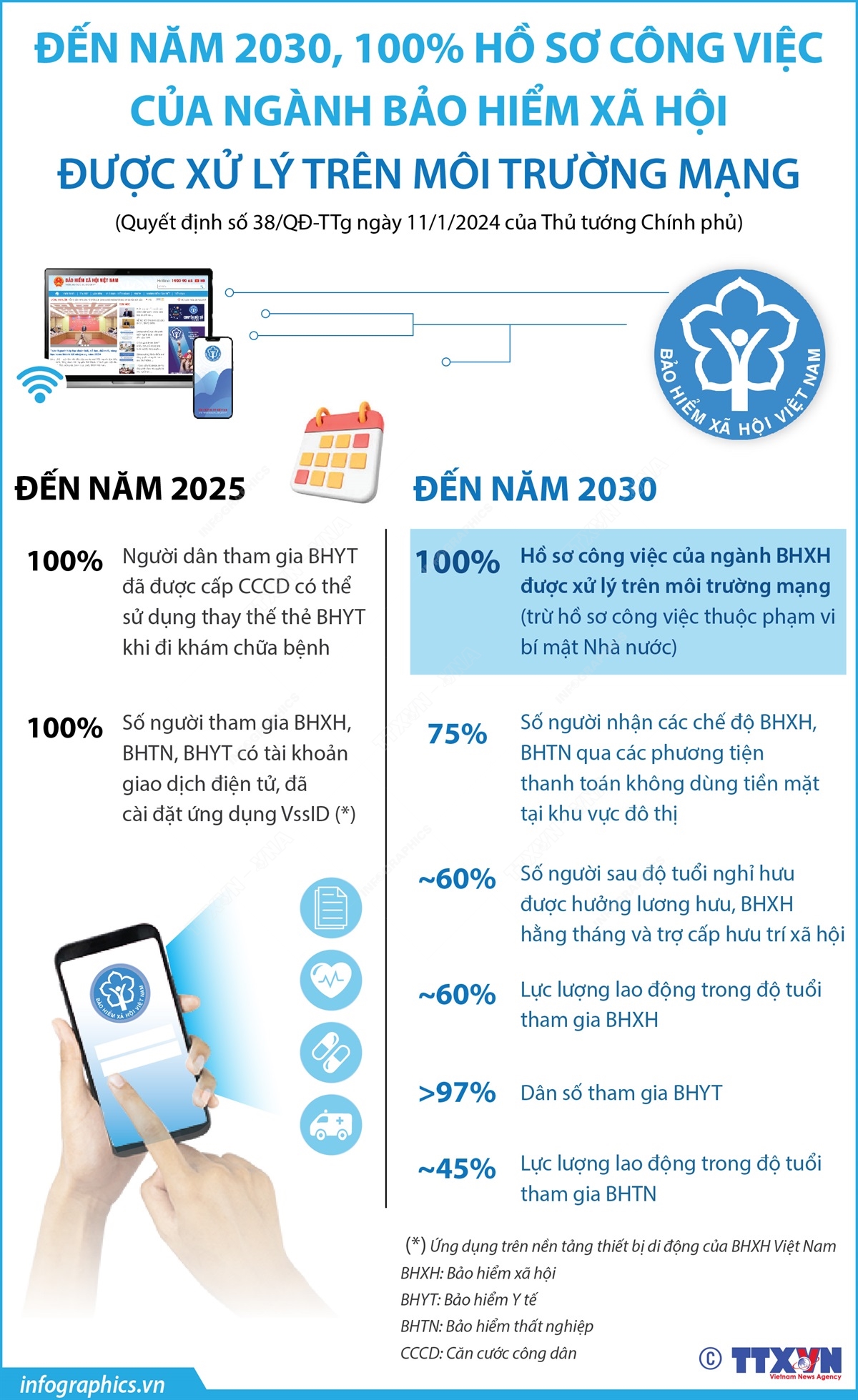 Tin cùng chuyên mục Ban hành bảng giá đất hằng năm từ ngày 1/1/202626/02/2024 09:38Ngày 18/1/2024, tại Kỳ họp bất thường lần thứ 5, Quốc hội nước Cộng hòa xã hội chủ nghĩa Việt Nam khóa XV thông qua Luật Đất đai, có hiệu lực từ ngày 1/1/2025. Điều 190 và Điều 248 có hiệu lực sớm từ ngày 1/4/2024. Luật Đất đai (sửa đổi) có nhiều điểm mới quan trọng, trong đó có quy định về việc ban hành bảng giá đất hằng năm từ 1/1/2026. Các trường hợp thu hồi đất để phát triển kinh tế-xã hội vì lợi ích quốc gia, công cộng (Phần 3 và hết)26/02/2024 09:34Ngày 18/1/2024, tại Kỳ họp bất thường lần thứ 5, Quốc hội nước Cộng hòa xã hội chủ nghĩa Việt Nam khóa XV thông qua Luật Đất đai, có hiệu lực từ ngày 1/1/2025. Điều 190 và Điều 248 có hiệu lực sớm từ ngày 1/4/2024. Theo Điều 79 Luật Đất đai, từ 1/1/2025, Nhà nước thu hồi đất trong trường hợp thật cần thiết để thực hiện dự án phát triển kinh tế-xã... Các trường hợp thu hồi đất để phát triển kinh tế-xã hội vì lợi ích quốc gia, công cộng (Phần 2)26/02/2024 09:34Ngày 18/1/2024, tại Kỳ họp bất thường lần thứ 5, Quốc hội nước Cộng hòa xã hội chủ nghĩa Việt Nam khóa XV thông qua Luật Đất đai, có hiệu lực từ ngày 1/1/2025. Điều 190 và Điều 248 có hiệu lực sớm từ ngày 1/4/2024. Theo Điều 79 Luật Đất đai, từ 1/1/2025, Nhà nước thu hồi đất trong trường hợp thật cần thiết để thực hiện dự án phát triển kinh tế-xã... Các trường hợp thu hồi đất để phát triển kinh tế-xã hội vì lợi ích quốc gia, công cộng (Phần 1)26/02/2024 09:33Ngày 18/1/2024, tại Kỳ họp bất thường lần thứ 5, Quốc hội nước Cộng hòa xã hội chủ nghĩa Việt Nam khóa XV thông qua Luật Đất đai, có hiệu lực từ ngày 1/1/2025. Điều 190 và Điều 248 có hiệu lực sớm từ ngày 1/4/2024. Theo Điều 79 Luật Đất đai, từ 1/1/2025, Nhà nước thu hồi đất trong trường hợp thật cần thiết để thực hiện dự án phát triển kinh tế-xã... Bổ sung 4 nền tảng số quốc gia phục vụ Chuyển đổi Số Việt Nam26/02/2024 09:33Theo danh mục nền tảng số quốc gia lần 2 được Bộ Thông tin và Truyền thông ban hành để thay thế cho danh mục công bố lần 1, có 4 nền tảng được bổ sung gồm: Hóa đơn điện tử, Bảo hiểm Xã hội số, Cảng biển Số và Cửa khẩu Số. Với 4 nền tảng được bổ sung, tổng số danh mục nền tảng số quốc gia phục vụ Chuyển đổi Số, phát triển Chính phủ Số, Kinh tế Số,... Đến năm 2030, 100% hồ sơ công việc của ngành Bảo hiểm xã hội được xử lý trên môi trường mạng26/02/2024 09:33Chiến lược phát triển ngành Bảo hiểm xã hội Việt Nam đến năm 2030, ngành Bảo hiểm Xã hội Việt Nam đặt ra chỉ tiêu đến năm 2030, khoảng 60% lao động trong độ tuổi tham gia bảo hiểm xã hội, khoảng 60% số người sau độ tuổi nghỉ hưu được hưởng lương hưu, bảo hiểm xã hội hàng tháng và trợ cấp hưu trí xã hội; trên 97% dân số tham gia bảo hiểm y tế…