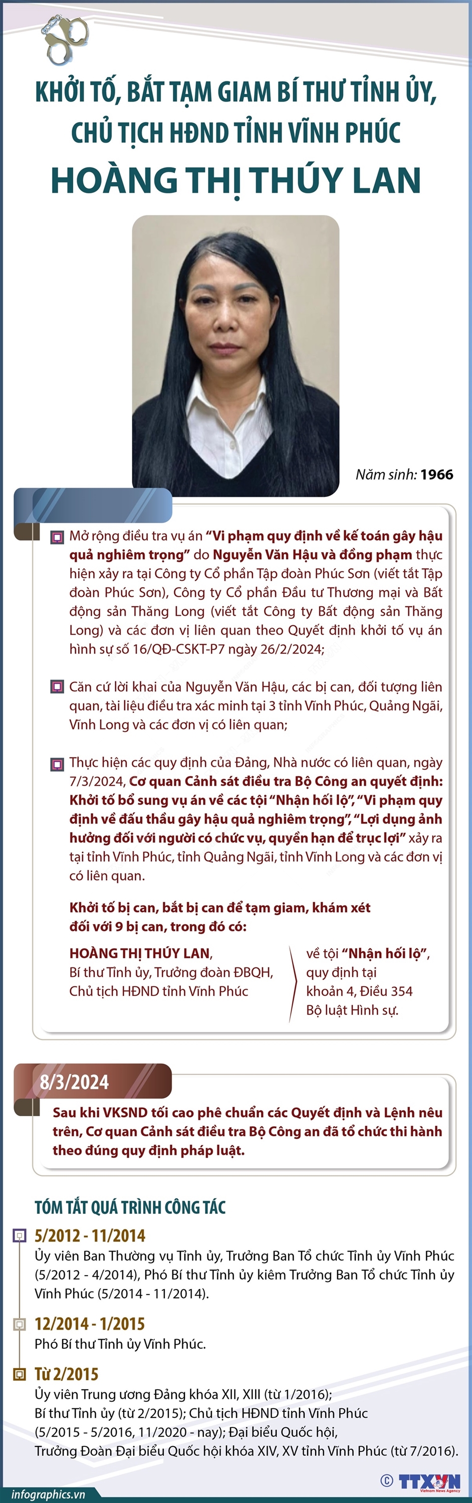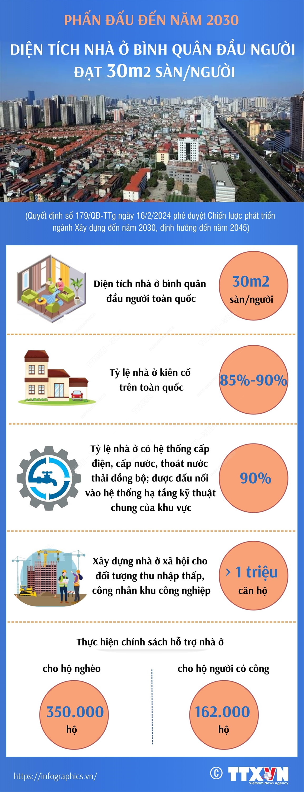 Tin cùng chuyên mục Xét xử sơ thẩm vụ án Tân Hoàng Minh: Huy động tiền của 6.630 nhà đầu tư vào nhiều mục đích khác nhau26/03/2024 09:03Sáng 19/3/2023, Tòa án nhân dân thành phố Hà Nội đã mở phiên tòa xét xử sơ thẩm vụ án xảy ra tại Công ty trách nhiệm hữu hạn Thương mại Dịch vụ Khách sạn Tân Hoàng Minh - viết tắt là Công ty Tân Hoàng Minh. Trong vụ án này, 15 bị cáo, trong đó có bị cáo Đỗ Anh Dũng (Chủ tịch Hội đồng quản trị, kiêm Tổng Giám đốc Công ty Tân Hoàng Minh) bị Viện Kiểm... Khởi tố, bắt tạm giam Bí thư Tỉnh ủy, Chủ tịch HĐND tỉnh Vĩnh Phúc Hoàng Thị Thúy Lan21/03/2024 11:36Trung tướng Tô Ân Xô, Người phát ngôn Bộ Công an cho biết, mở rộng điều tra vụ án xảy ra tại Công ty Cổ phần Tập đoàn Phúc Sơn, Cơ quan CSĐT Bộ Công an khởi tố bị can, bắt bị can để tạm giam, khám xét đối với 9 bị can, trong đó có: Hoàng Thị Thúy Lan, Bí thư Tỉnh ủy, Trưởng đoàn đại biểu Quốc hội, Chủ tịch HĐND tỉnh Vĩnh Phúc về tội “Nhận hối lộ”,... Giới thiệu về gian trưng bày của TTXVN tại Hội Báo toàn quốc năm 202414/03/2024 15:38Mang thông điệp “Thông tin chủ lực, bắt nhịp xu hướng”, Gian trưng bày của Thông tấn xã Việt Nam (TTXVN) tại Hội Báo toàn quốc năm 2024 với điểm nhấn là thông tin ảnh, một trong những thế mạnh thông tin chủ lực, tiên phong của cơ quan thông tấn quốc gia từ ngày đầu thành lập đến nay. "Check-in 360 Photo Booth" độc... Mục tiêu đến năm 2050, Việt Nam hình thành một số cơ sở y tế hiện đại ngang tầm quốc tế12/03/2024 09:55Theo Quy hoạch mạng lưới y tế thời kỳ 2021 - 2030, tầm nhìn đến năm 2050 được Chính phủ phê duyệt, đến năm 2050, mạng lưới cơ sở y tế từ Trung ương đến địa phương đủ năng lực đáp ứng nhu cầu chăm sóc sức khỏe nhân dân tương đương với nước phát triển, thu nhập cao; tiếp tục phát triển, mở rộng quy mô của các cơ sở y tế, mở rộng mạng lưới bệnh viện... Phấn đấu đến năm 2030, diện tích nhà ở bình quân đầu người đạt 30m2 sàn/người11/03/2024 08:50Ngành xây dựng đặt mục tiêu, đến năm 2030 diện tích nhà ở bình quân đầu người toàn quốc đạt khoảng 30m2 sàn/người; tỷ lệ nhà ở kiên cố trên toàn quốc đạt 85%-90%; xây dựng ít nhất 1 triệu căn hộ nhà ở xã hội cho đối tượng thu nhập thấp; hỗ trợ nhà ở cho khoảng 350.000 hộ nghèo, 162.000 hộ người có công… Mục tiêu về hạ tầng kỹ thuật đô thị đến năm 203011/03/2024 08:50Ngành xây dựng đặt mục tiêu, đến năm 2030, tỷ lệ đất giao thông trên đất xây dựng đô thị đạt bình quân 16-26%; tỷ lệ đất dành cho bến bãi đỗ xe đạt 1-3 m2/người; tỷ lệ vận tải hành khách công cộng đạt 20-25%; tỷ lệ người dân đô thị được cung cấp nước sạch qua hệ thống cấp nước tập trung đạt 95-100%; tỷ lệ thu gom nước thải đô thị đạt khoảng 80%...