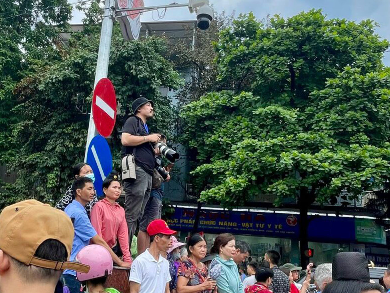 | Phóng viên Báo ảnh Việt Nam Trần Thanh Giang đứng trên điểm cao tác nghiệp tại sự kiện Kỷ niệm 70 năm Chiến thắng Điện Biên Phủ, ngày 7/5 |
