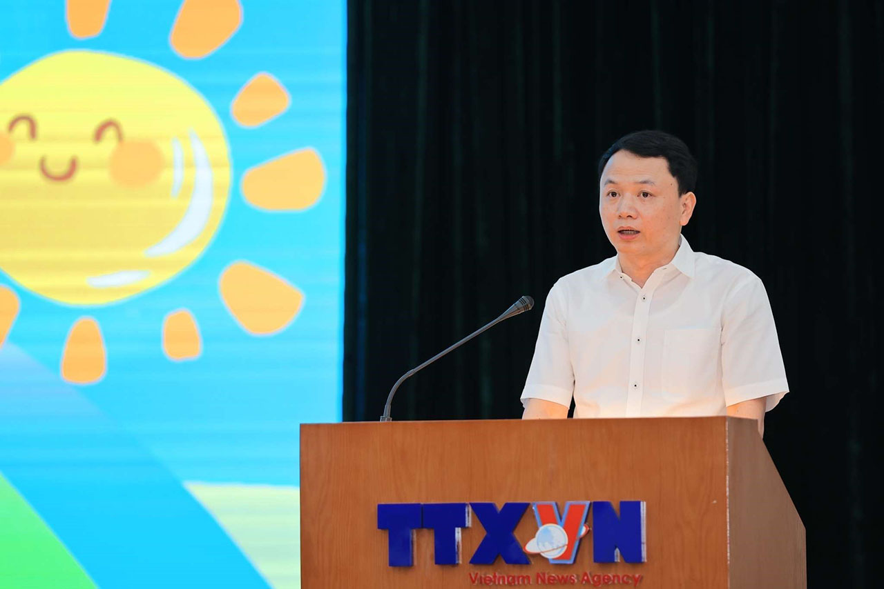 Chủ tịch Công đoàn TTXVN, Trưởng ban Tổ chức - Cán bộ Đỗ Mạnh Chiến phát biểu tại Lễ tuyên dương học sinh giỏi và giao lưu“Vui hè 2024”, ngày 18/6