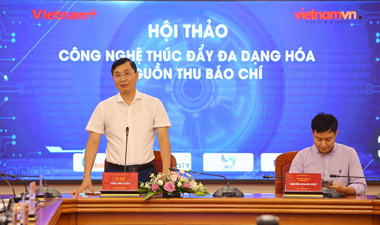 Phát biểu đề dẫn, Tổng biên tập báo điện tử VietnamPlus Trần Tiến Duẩn nhấn mạnh, trong công cuộc chuyển đổi số, công nghệ không chỉ dẫn dắt báo chí mà còn thúc đẩy đa dạng hóa nguồn thu cho báo chí. Nhận định này từng được Hiệp hội Báo chí và các Nhà xuất bản tin tức thế giới WAN-IFRA nhắc đi nhắc lại nhiều lần trong các báo cáo thường niên, đặc biệt là sau giai đoạn đại dịch COVID-19. Trong báo cáo xu hướng 2024, WAN-IFRA cho biết, các nhà xuất bản tin tức toàn cầu mong đợi 20% tổng doanh thu của họ sẽ đến từ các nguồn thu mới, bên cạnh hai nguồn thu truyền thống là quảng cáo và lợi nhuận từ độc giả. Cụ thể, các mô hình kinh doanh mới dành cho báo chí được nhắc tới là tổ chức sự kiện, gọi vốn đầu tư, đối tác của các nền tảng số, thương mại điện tử, tiếp thị liên kết hay kinh doanh dữ liệu…