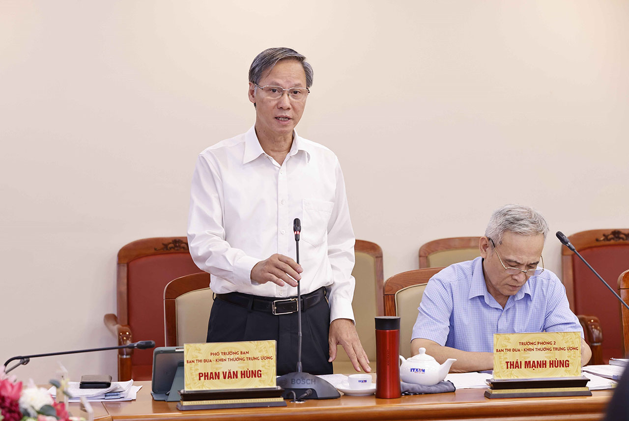 | Phó trưởng ban Thi đua - Khen thưởng Trung ương Phan Văn Hùng phát biểu tại hội nghị sơ kết công tác 6 tháng đầu năm 2024 của Khối thi đua các bộ, ngành Khoa học - Văn hóa - Xã hội, ngày 15/8 |