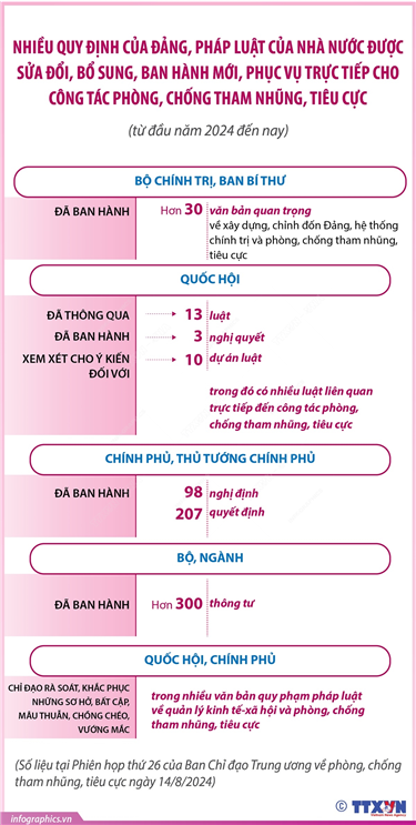Tin cùng chuyên mục Đến năm 2025, Việt Nam phủ sóng băng rộng di động 100% quốc lộ, khu công nghiệp15/08/2024 16:03Với mục tiêu nâng cao chất lượng mạng viễn thông di động của Việt Nam, Bộ Thông tin và Truyền thông đã ra Quyết định số 1110/QĐ-BTTTT, ngày 2/7/2024 phê duyệt “Kế hoạch nâng cao chất lượng mạng viễn thông di động Việt Nam đến năm 2025”. Kế hoạch nhằm nâng cao chất lượng... Từ 1/8/2024: Các trường hợp nào sẽ không cấp Giấy chứng nhận quyền sử dụng đất, quyền sở hữu tài sản gắn liền với đất?15/08/2024 16:02Theo Điều 151 Luật Đất đai 2024, từ 1/8/2024, các trường hợp sau không cấp Giấy chứng nhận quyền sử dụng đất, quyền sở hữu tài sản gắn liền với đất: Từ 1/8/2024: Các tài sản nào gắn liền với đất không được cấp Giấy chứng nhận quyền sử dụng đất, quyền sở hữu tài sản gắn liền với đất? (Phần 1)15/08/2024 16:01Theo Điều 151 Luật Đất đai 2024, từ 1/8/2024, các tài sản gắn liền với đất không được cấp Giấy chứng nhận quyền sử dụng đất, quyền sở hữu tài sản gắn liền với đất trong trường hợp sau đây: Từ 1/8/2024: Các tài sản nào gắn liền với đất không được cấp Giấy chứng nhận quyền sử dụng đất, quyền sở hữu tài sản gắn liền với đất? (Phần 2)15/08/2024 16:00Theo Điều 151 Luật Đất đai 2024, từ 1/8/2024, các tài sản gắn liền với đất không được cấp Giấy chứng nhận quyền sử dụng đất, quyền sở hữu tài sản gắn liền với đất trong trường hợp sau đây: Kết quả công tác phòng, chống tham nhũng, tiêu cực 6 tháng đầu năm 202415/08/2024 15:576 tháng đầu năm 2024, công tác phòng, chống tham nhũng, tiêu cực tiếp tục được đẩy mạnh quyết liệt, góp phần quan trọng trong công tác xây dựng, chỉnh đốn Đảng, giữ vững ổn định chính trị, thúc đẩy phát triển kinh tế - xã hội, tăng cường, củng cố thêm... Nhiều quy định của Đảng, pháp luật của Nhà nước được sửa đổi, bổ sung, ban hành mới, phục vụ trực tiếp cho công tác phòng, chống tham nhũng, tiêu cực15/08/2024 15:56Từ đầu năm 2024 đến nay, nhiều quy định của Đảng, pháp luật của Nhà nước được sửa đổi, bổ sung, ban hành mới, phục vụ trực tiếp cho công tác phòng, chống tham nhũng, tiêu cực. Bộ Chính trị, Ban Bí thư đã ban hành hơn 30 văn bản quan trọng về xây dựng, chỉnh đốn...