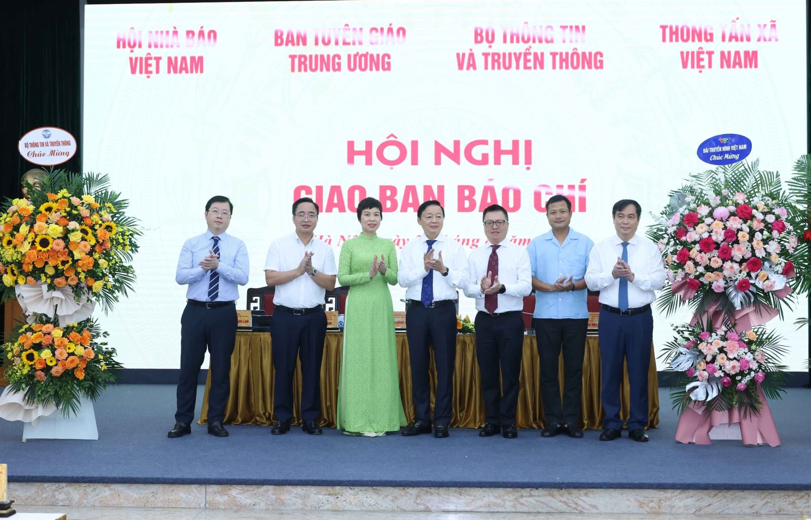| Phó Thủ tướng Trần Hồng Hà và Chủ tịch Hội Nhà báo Việt Nam Lê Quốc Minh chúc mừng ngày thành lập của 4 cơ quan: Bộ Thông tin và Truyền thông, TTXVN, Đài Tiếng nói Việt Nam, Đài Truyền hình Việt Nam, ngày 27/8 |