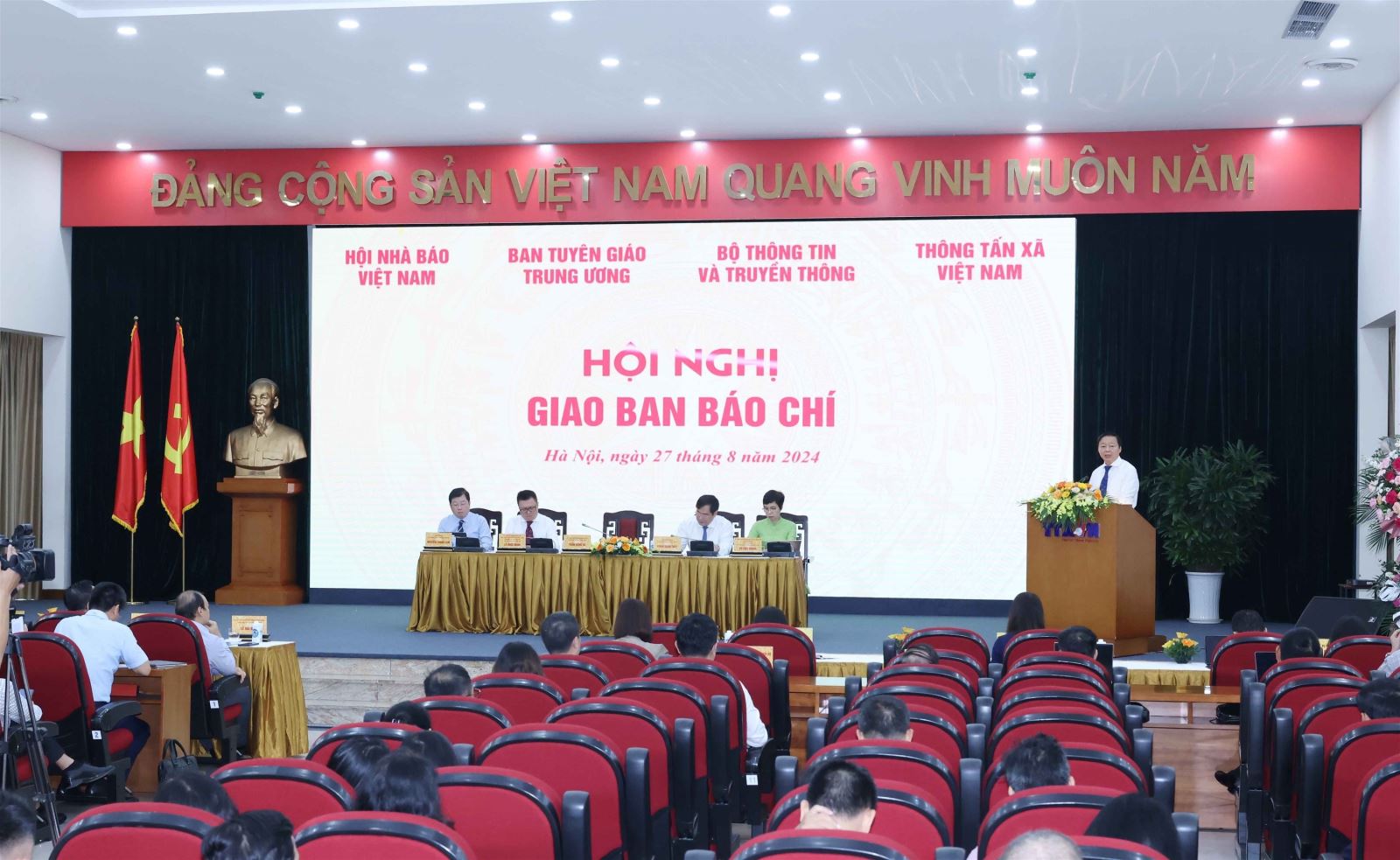 | Hội nghị giao ban báo chí toàn quốc do Ban Tuyên giáo Trung ương phối hợp với Bộ Thông tin và Truyền thông, Hội Nhà báo Việt Nam, TTXVN tổ chức tại Trung tâm Thông tấn quốc gia, ngày 27/8 |
