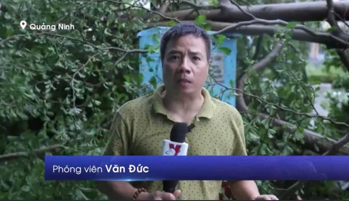 Trưởng CQTT TTXVN tại Quảng Ninh Vũ Văn Đức dẫn hiện trường đưa tin cơn bão số 3, ngày 7/9
