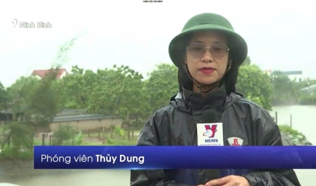 | Phóng viên CQTT TTXVN tại Ninh Bình Đinh Thị Thuỳ Dung cập nhật thông tin về diễn biến cơn bão số 3, ngày 7/9 |