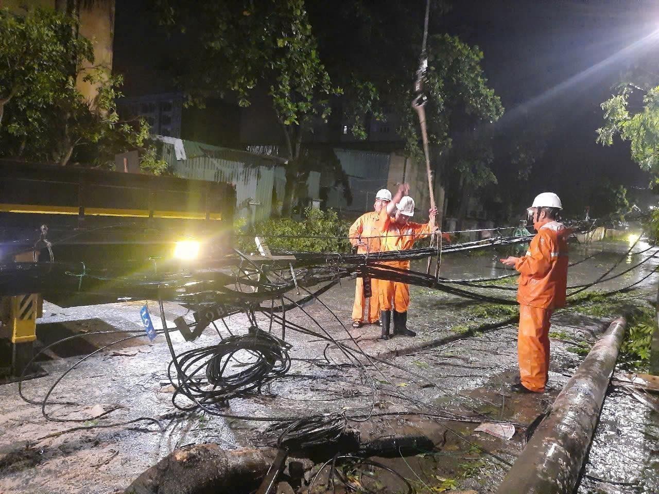 Công nhân EVN Hà Nội khắc phục sự cố lưới điện ngay trong đêm 7/9
