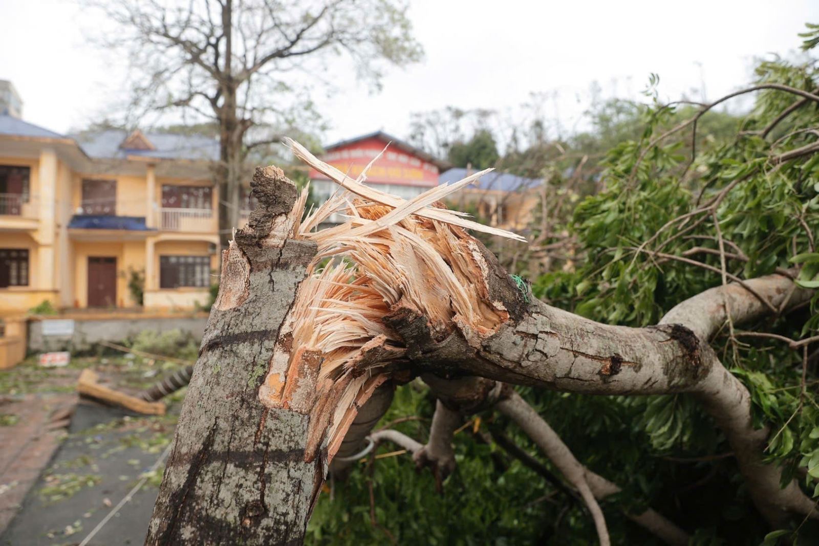 Tại TP. Hạ Long, Quảng Ninh, rất nhiều cây xanh gãy đổ, biển quảng cáo bay tứ tung rất nguy hiểm