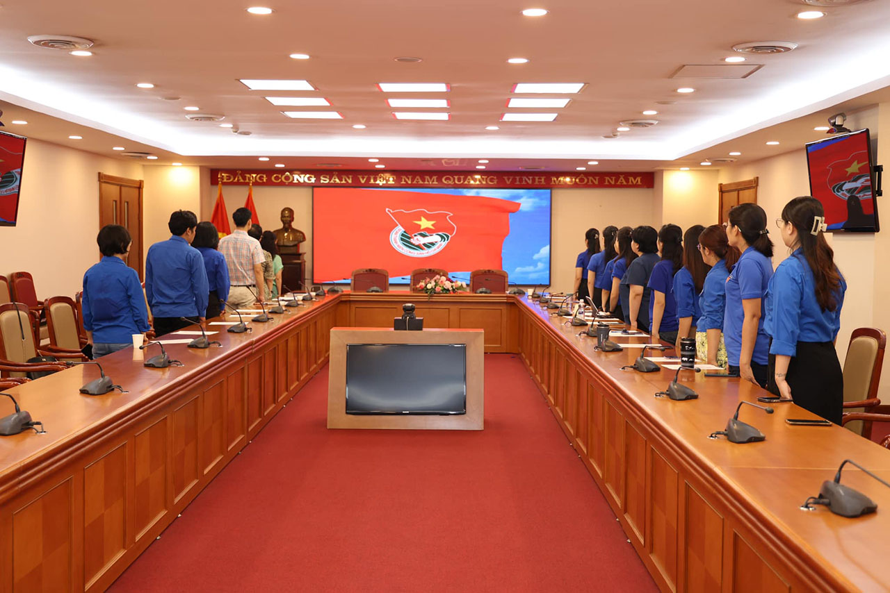 | Thực hiện nghi lễ chào cờ tại Đại hội Chi đoàn Ban biên tập tin Kinh tế, nhiệm kỳ 2024-2027, ngày 8/8 |