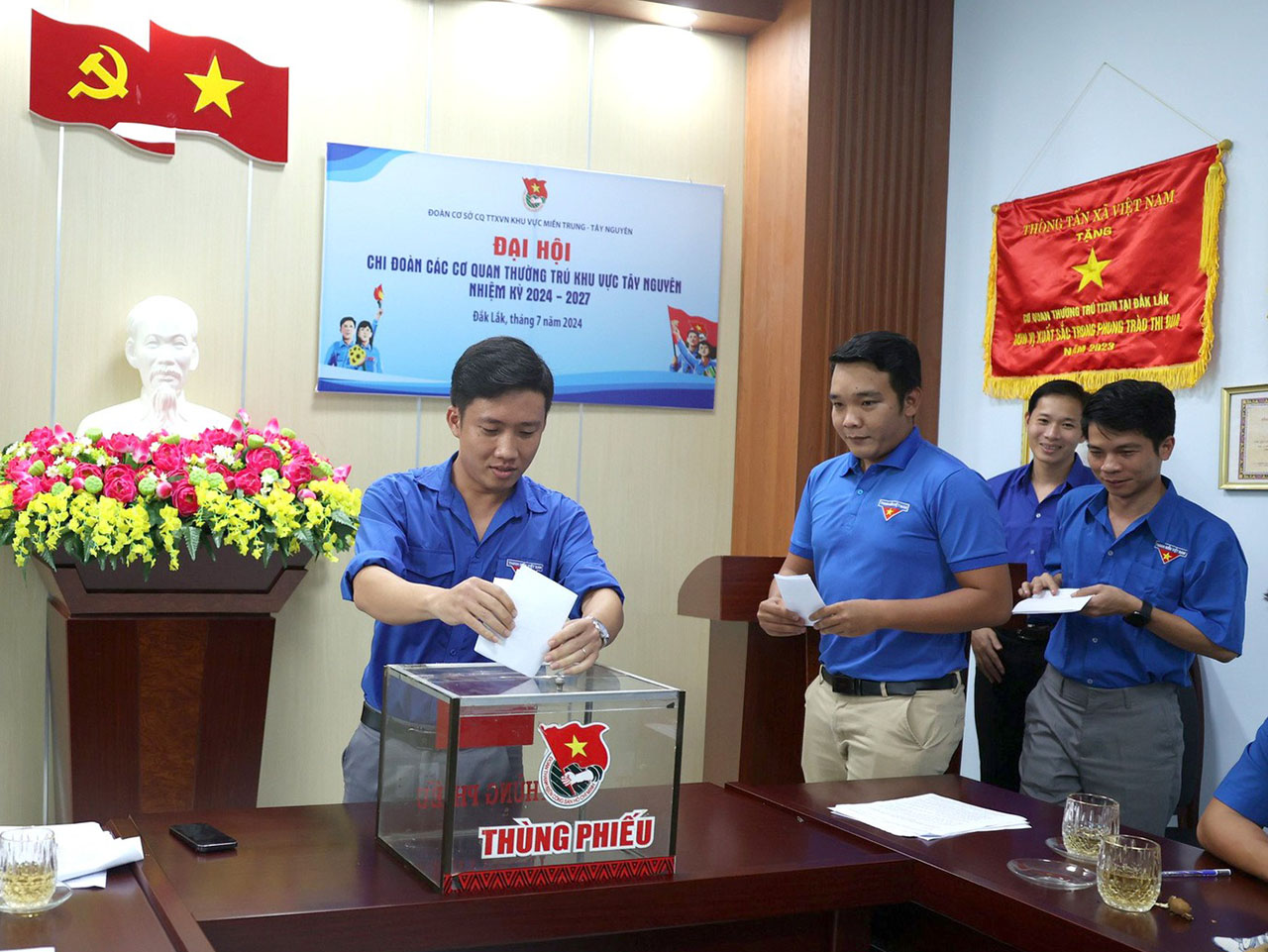 | Bỏ phiếu bầu Ban chấp hành nhiệm kỳ 2024-2027 tại Đại hội Chi đoàn các CQTT khu vực Tây Nguyên, ngày 15/7 |