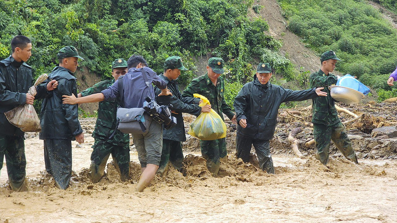 Tác nghiệp mưa lũ chưa bao giờ là dễ dàng. Để có những hình ảnh nhanh nhất, bao quát nhất, lột tả được sự thảm khốc mà thiên tai đã gây ra, phóng viên phải vượt qua nhiều vất vả, hiểm nguy. Suốt mấy ngày liền, chúng tôi liên tục dầm mưa, ngâm mình trong nước lũ, băng qua dòng nước chảy xiết, lội bùn hay đi trên địa hình toàn đá gập ghềnh khiến chân tay trầy xước. Có những đoạn nước chảy cuồn cuộn, các chiến sĩ biên phòng đã dàn hàng ngang, nắm tay, đan chân nhau từ bên này sang bên kia dòng nước để chắn sức chảy của dòng nước cho phóng viên và lực lượng cứu hộ đi vào tâm lũ.