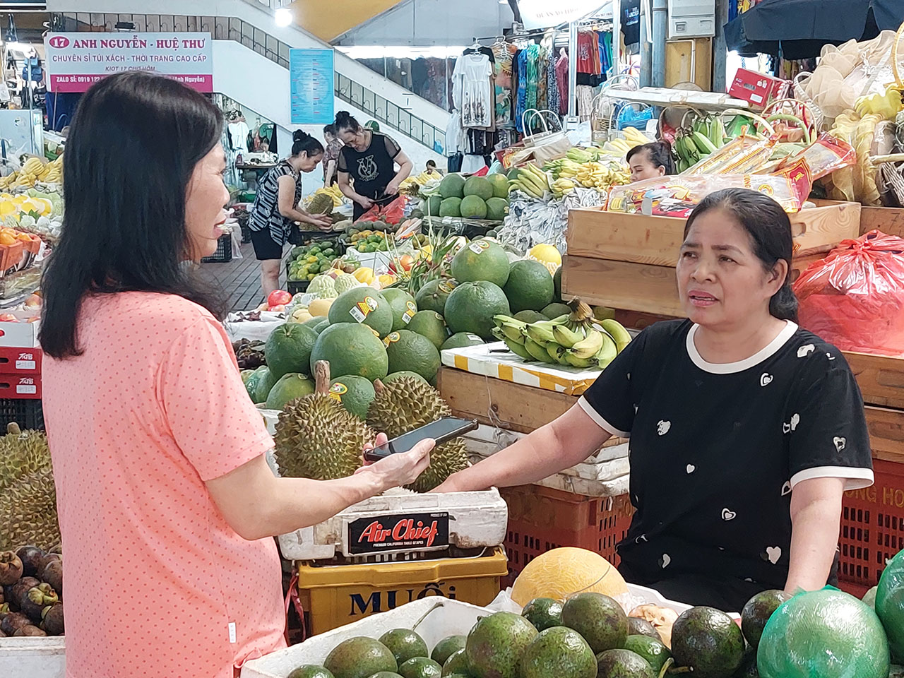 | Phóng viên Đinh Thị Thuận phỏng vấn bà con tiểu thương chợ Hôm - Đức Viên, Hà Nội về văn hóa chợ truyền thống |