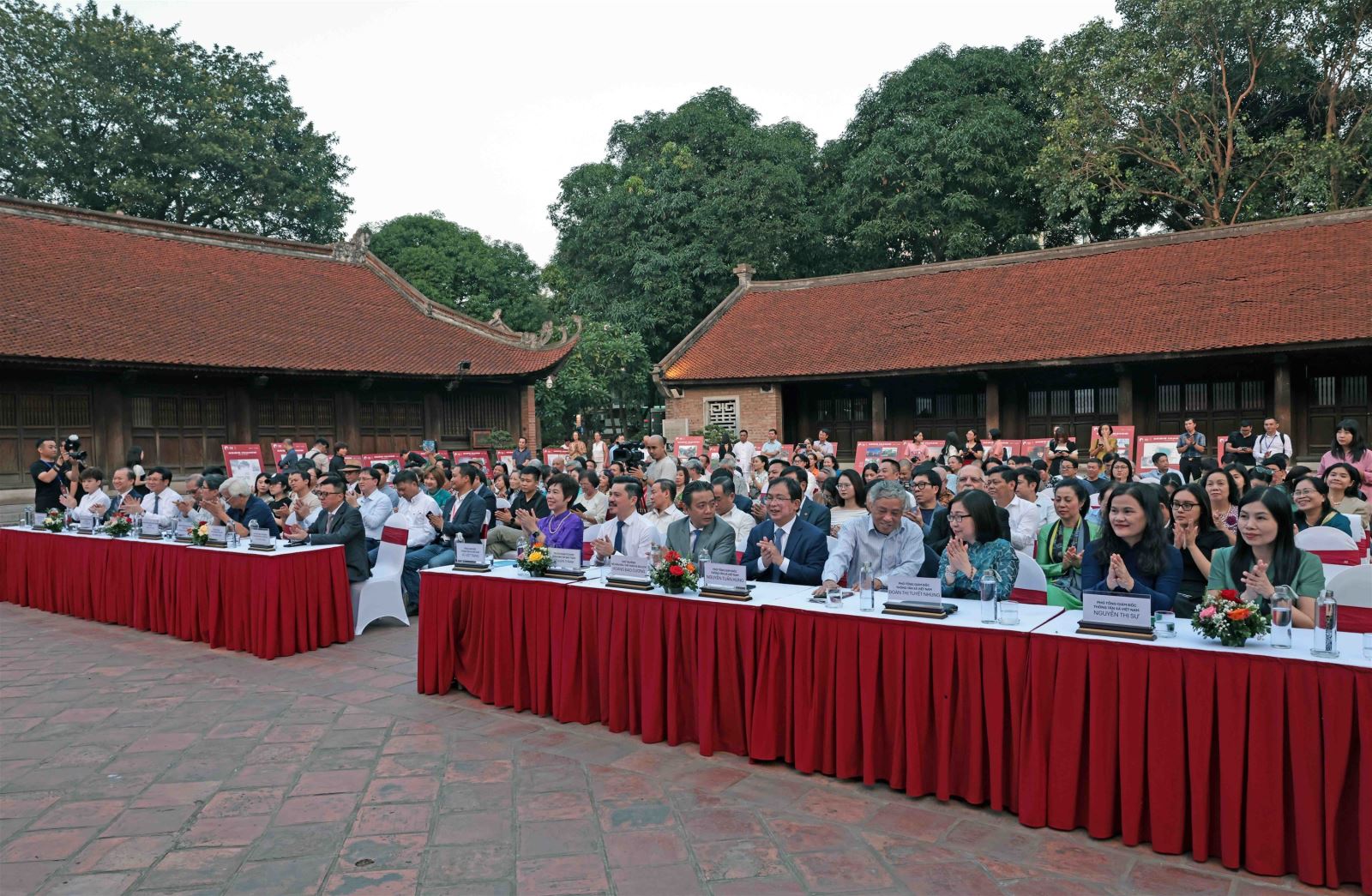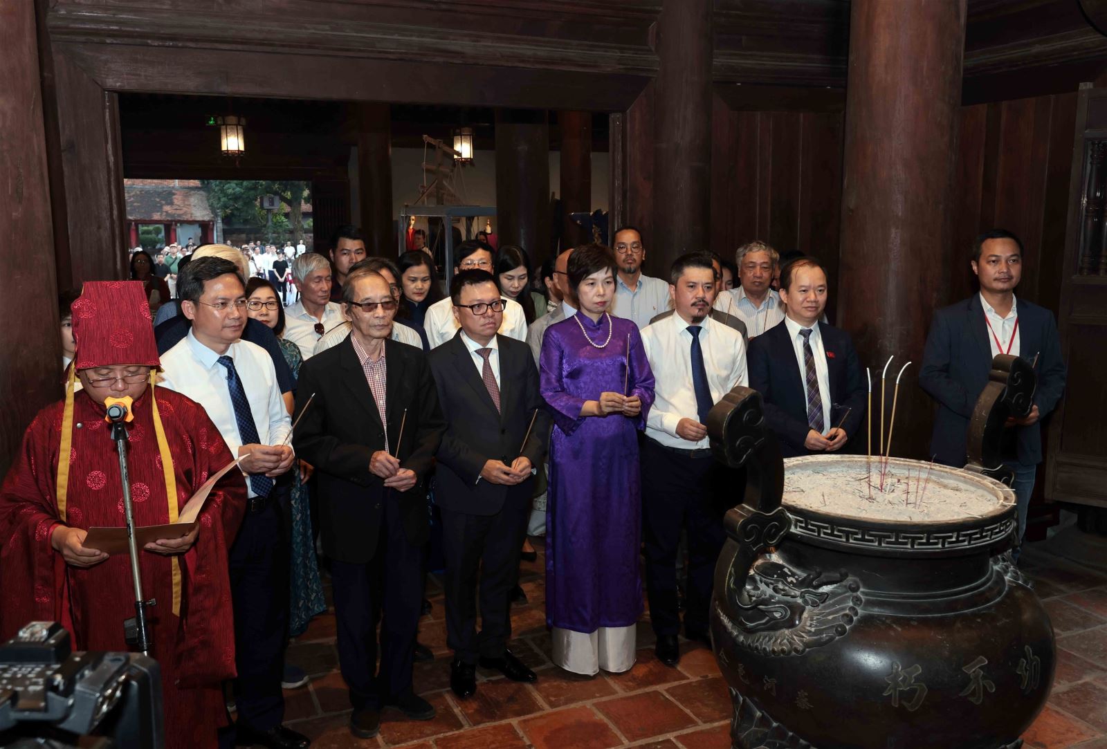 Các đại biểu dâng hương tại Văn Miếu- Quốc Tử Giám trước khi diễn ra lễ trao Giải Bùi Xuân Phái - Vì tình yêu Hà Nội lần thứ 17 năm 2024, ngày 8/10