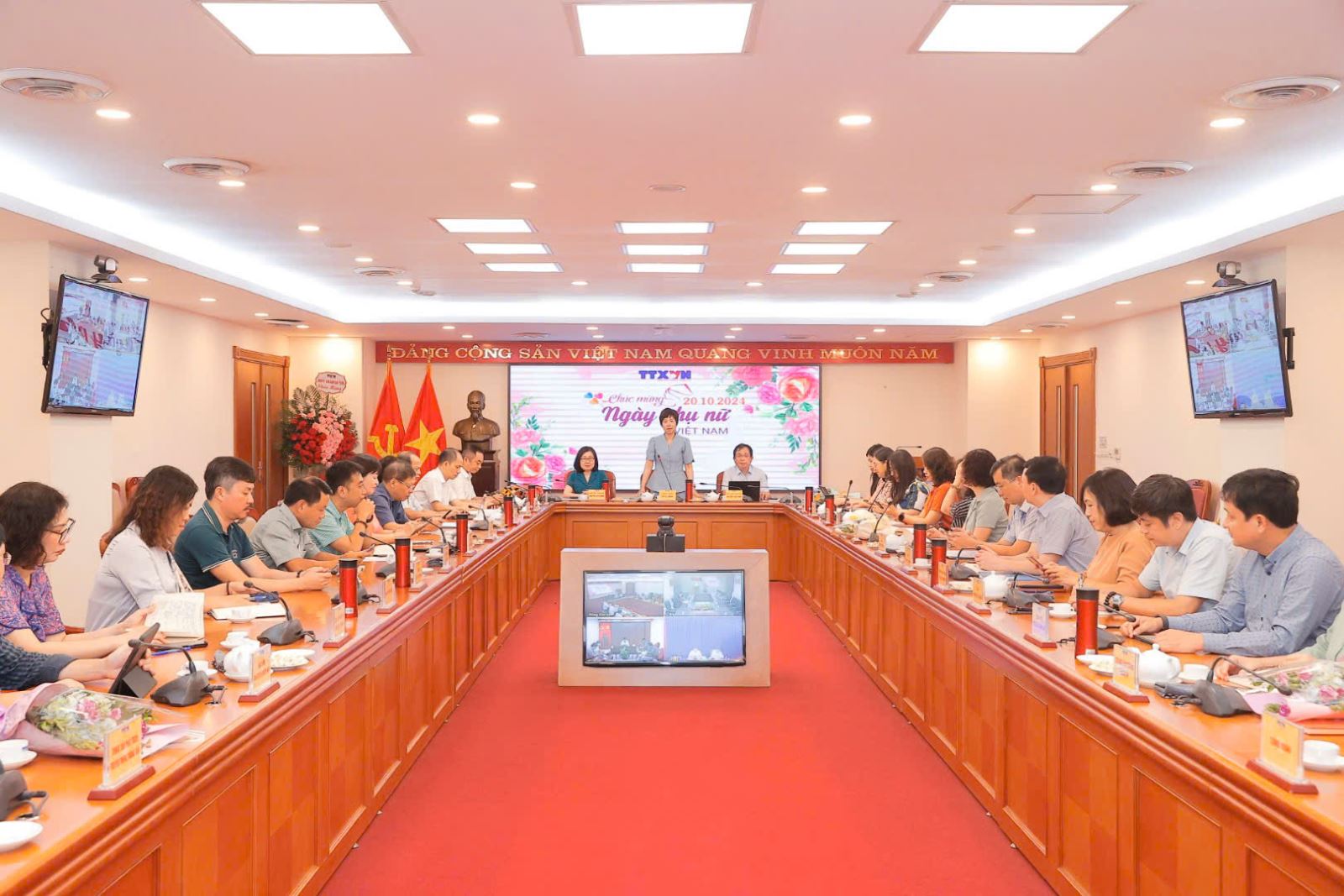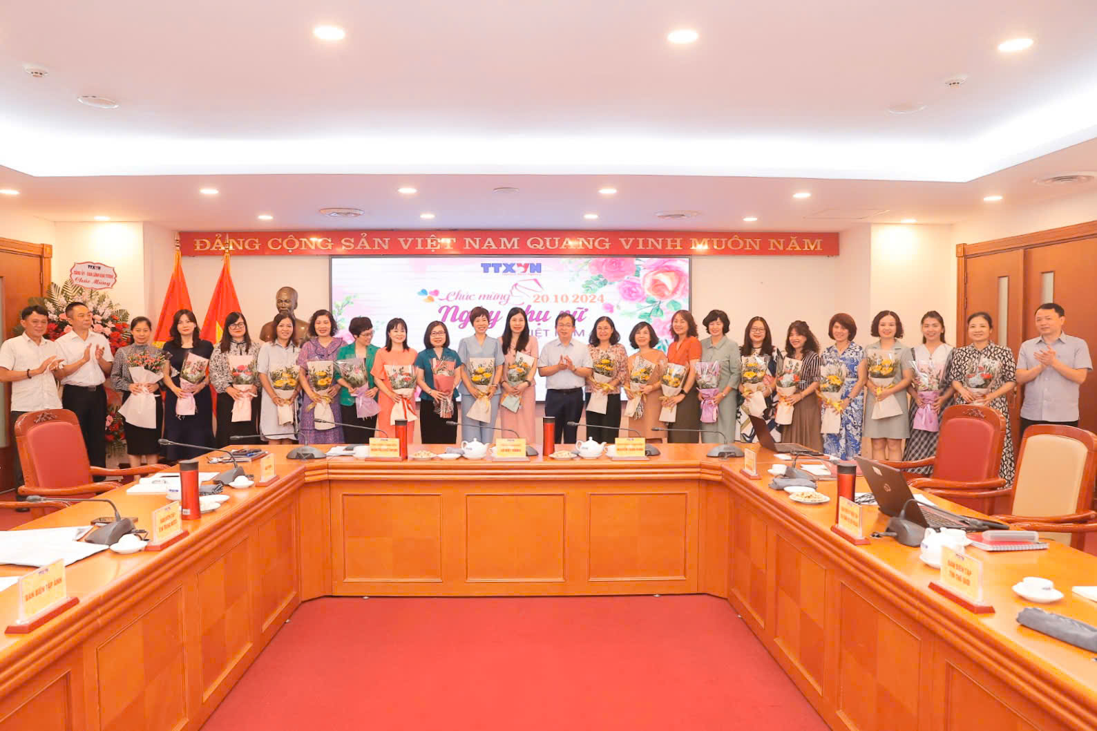 Sự kiện và kỷ niệmTin trong ngành Chúc mừng ngày Phụ nữ Việt Nam 20/10 Thứ tư, 16/10/2024 14:59 Nhân kỷ niệm ngày Phụ nữ Việt Nam, ngày 14/10, tại Hội nghị giao ban toàn ngành, Đảng ủy, Ban lãnh đạo Thông tấn xã Việt Nam (TTXVN) đã tặng hoa, gửi lời chúc mừng tốt đẹp nhất tới toàn thể nữ cán bộ, phóng viên, công nhân viên các đơn vị trong ngành. Bí thư Đảng ủy, Tổng giám đốc TTXVN Vũ Việt Trang phát biểu chúc mừng nữ cán bộ, phóng viên, công nhân viên các đơn vị trong ngành nhân ngày Phụ nữ Việt Nam 20/10 Thời gian qua, được sự quan tâm và tạo điều kiện của Đảng ủy, Ban lãnh đạo, Công đoàn TTXVN, điều kiện làm việc và đời sống của cán bộ, phóng viên, công nhân viên trong ngành nói chung, nữ công đoàn viên nói riêng được đảm bảo, từng bước nâng cao. Chị em đã tích cực phát huy khả năng chuyên môn nghiệp vụ, cống hiến cho sự phát triển của TTXVN./. Đảng ủy, Ban lãnh đạo, Công đoàn TTXVN chúc mừng các nữ cán bộ lãnh đạo ngành và các đơn vị nhân ngày Phụ nữ Việt Nam 20/10 Nội san Thông tấn