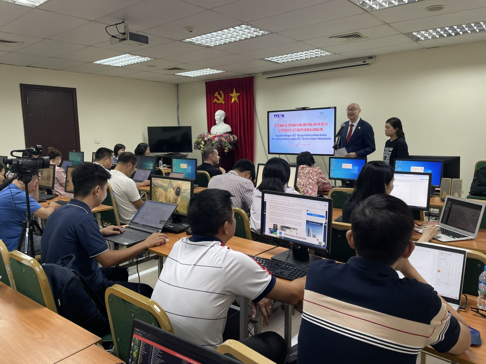 Tới dự và phát biểu tại khóa học, ông Pierre Du Ville, Trưởng đại diện phái đoàn Wallonie-Bruxelles tại Việt Nam nhấn mạnh, các khóa học thuộc dự án là minh chứng cho quan hệ hợp tác chặt chẽ giữa Bỉ và Việt Nam trong lĩnh vực báo chí truyền thông. Qua đó, giúp đội ngũ phóng viên, kỹ thuật viên sản xuất những tác phẩm báo chí chất lượng và có độ tin cậy cao. Với khóa học về trí tuệ nhân tạo, các học viên sẽ được giới thiệu những phương thức, công cụ hỗ trợ phóng viên trong quá trình sản xuất thông tin.