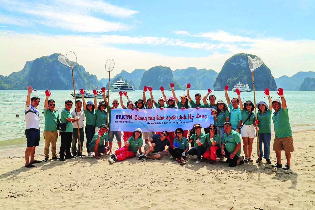 Sự kiện và kỷ niệmTin trong ngành Lễ kỷ niệm 20 năm lớp phóng viên K23A Thứ sáu, 01/11/2024 14:41 Ngày 25/10, tại Hà Nội, Lớp phóng viên, biên tập viên Thông tấn xã Việt Nam (TTXVN) K23A đã tổ chức gặp mặt kỷ niệm 20 năm cùng nhau học tập và rèn luyện dưới mái nhà Thông tấn. Tổng giám đốc TTXVN Vũ Việt Trang, Phó tổng giám đốc Nguyễn Thị Sự, Phó bí thư Thường trực Đảng ủy Đỗ Thị Trang, Giám đốc Trung tâm Bồi dưỡng nghiệp vụ Thông tấn Nguyễn Hồng Hạnh cùng học viên Lớp K23A, ngày 25/10 Cách đây 20 năm, ngày 17/8/2004, TTXVN đã khai giảng Lớp K23A tại hội trường tầng 2, số 33 Lê Thánh Tông, Hà Nội. Lớp học được tổ chức trong 6 tháng với 71 học viên đến từ các ban biên tập, tòa soạn báo, CQTT và một số cơ quan, đơn vị bạn. Sau 20 năm, các học viên từ khắp mọi miền lại tề tựu, cùng tham dự Lễ dâng hương tưởng nhớ các liệt sĩ đã hy sinh vì độc lập, tự do của Tổ quốc, vì sự nghiệp Thông tấn tại Nhà bia liệt sĩ - Trung tâm Thông tấn quốc gia và tham quan Phòng truyền thống TTXVN, cùng nhau ôn lại quá khứ hào hùng, những trang sử vàng suốt chặng đường gần 80 năm xây dựng và phát triển của Cơ quan Thông tấn Anh hùng. Sau cuộc gặp mặt tại Tổng xã, tập thể K23A đã lên đường, đến với tỉnh Quảng Ninh, phối hợp với Ban quản lý Vịnh Hạ Long tổ chức chương trình “Chung tay làm sạch Vịnh Hạ Long” cùng nhiều hoạt động giao lưu khác tại thành phố Cẩm Phả./. Một số hình ảnh Lớp K23A: Nội san Thông tấn