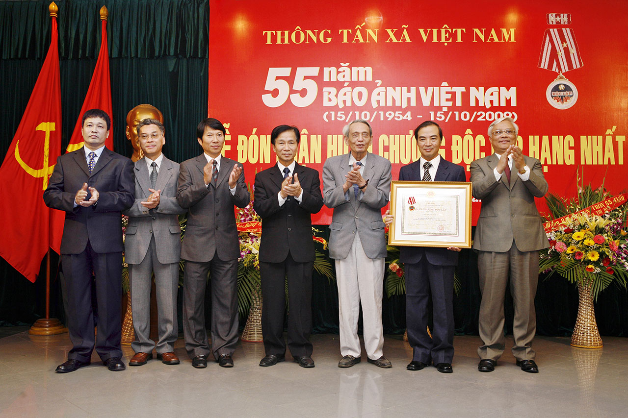 Các thế hệ lãnh đạo Báo ảnh Việt Nam đón nhận Huân chương Độc lập hạng Nhất dịp kỷ niệm 55 năm thành lập, ngày 15/10/2009