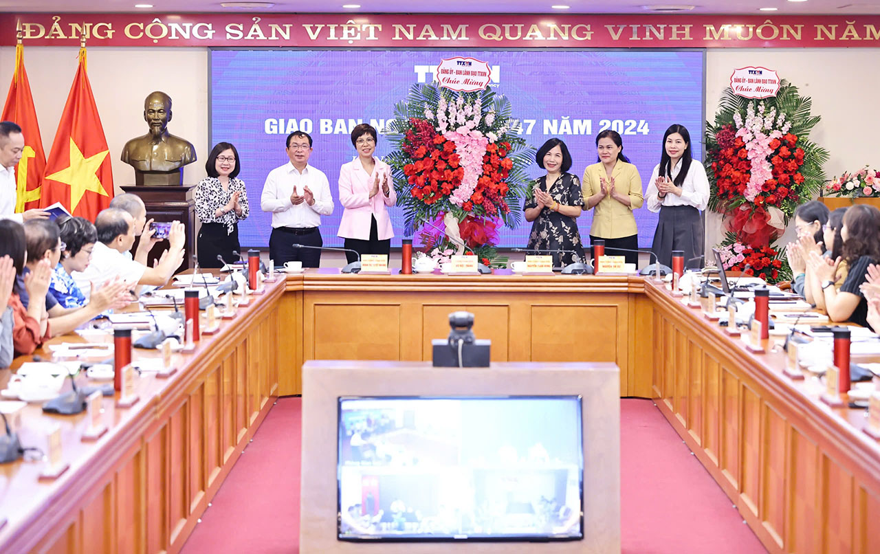 Sự kiện và kỷ niệmTin trong ngành Chúc mừng ngày Nhà giáo Việt Nam 20/11 Thứ hai, 18/11/2024 15:15 Sáng 18/11, tại buổi giao ban toàn ngành, Đảng ủy và Ban lãnh đạo Thông tấn xã Việt Nam (TTXVN) đã tặng hoa chúc mừng tập thể cán bộ, phóng viên Trung tâm Bồi dưỡng nghiệp vụ Thông tấn, nhân ngày Nhà giáo Việt Nam 20/11. Đảng ủy, Ban lãnh đạo TTXVN chúc mừng tập thể cán bộ, phóng viên Trung tâm Bồi dưỡng nghiệp vụ Thông tấn nhân ngày Nhà giáo Việt Nam 20/11 Kể từ khóa phóng viên, biên tập viên đầu tiên TTXVN tổ chức năm 1955 đến nay, trải qua 69 năm, công tác đào tạo bồi dưỡng luôn nhận được sự quan tâm, tạo điều kiện của Đảng ủy, Ban lãnh đạo ngành; sự phối hợp, hỗ trợ tích cực từ các đơn vị; sự nỗ lực vượt lên những khó khăn rất đặc thù của đội ngũ báo cáo viên, giảng viên và học viên, để cùng góp sức tạo dựng nên đội ngũ cán bộ, phóng viên, biên tập viên Thông tấn yêu nghề, thành thạo các kỹ năng làm báo hiện đại, đáp ứng yêu cầu phát triển của ngành, bắt nhịp với xu hướng của báo chí Việt Nam và thế giới./. Nội san Thông tấn