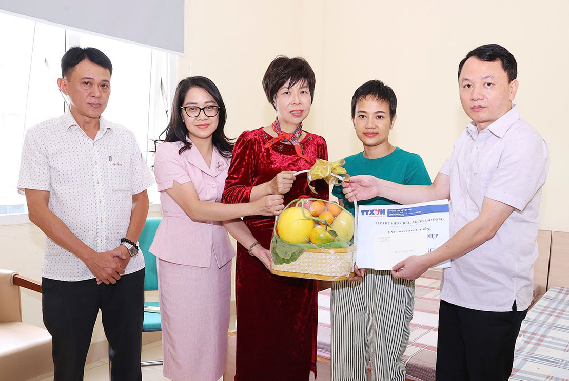 Sự kiện và kỷ niệmTin trong ngành Hỗ trợ hai phóng viên mắc bệnh hiểm nghèo Thứ năm, 05/12/2024 14:29 Ngày 14/11, thay mặt tập thể viên chức và người lao động Thông tấn xã Việt Nam (TTXVN), Tổng giám đốc Vũ Việt Trang, Phó tổng giám đốc Nguyễn Tuấn Hùng đã đến thăm hỏi, trao số tiền 157,3 triệu đồng cho phóng viên Lê Xuân Sơn (báo Tin tức) và trao 158 triệu đồng cho phóng viên Phạm Thị Hồng Điệp (CQTT Gia Lai); động viên hai phóng viên vượt lên khó khăn, yên tâm điều trị bệnh. Tổng giám đốc TTXVN Vũ Việt Trang thăm hỏi và trao quà tặng phóng viên Phạm Thị Hồng Điệp, ngày 14/11 Trước đó, ngày 14/10, với tinh thần tương thân tương ái, Công đoàn TTXVN đã phát động trong toàn thể viên chức và người lao động đợt ủng hộ tự nguyện hỗ trợ hai đoàn viên công đoàn là hai phóng viên: Lê Xuân Sơn và Phạm Thị Hồng Điệp mắc bệnh hiểm nghèo, có hoàn cảnh đặc biệt. Phó tổng giám đốc TTXVN Nguyễn Tuấn Hùng trò chuyện, động viên phóng viên Lê Xuân Sơn, ngày 14/11 Trong dịp này, Liên chi hội nhà báo TTXVN và nhiều tổ chức, cá nhân cũng đã thăm hỏi, trao quà động viên hai phóng viên./. Nội san Thông tấn số 11/2024
