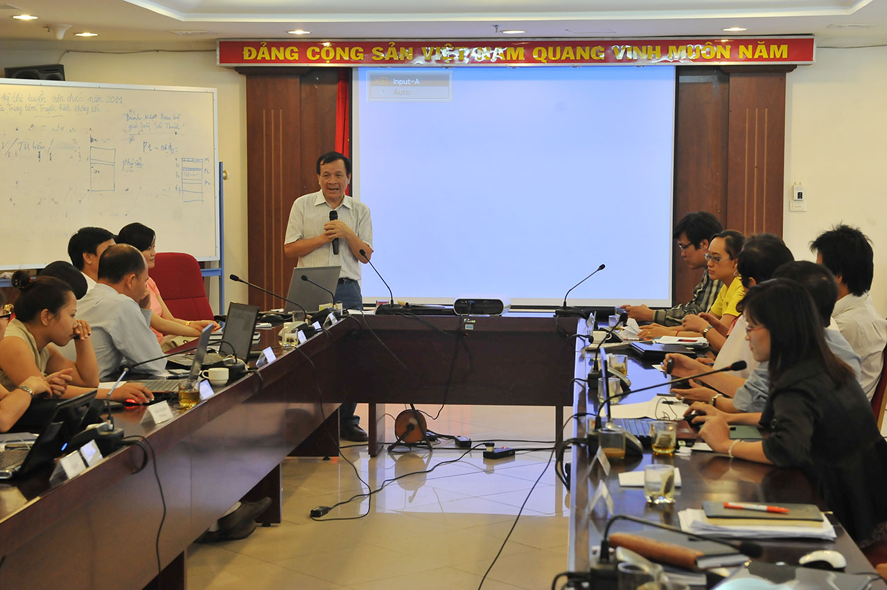 | Nhà báo Nguyễn Văn Vinh tại khóa học truyền hình dành cho phóng viên các CQTT phía Nam, tháng 4/2012 |