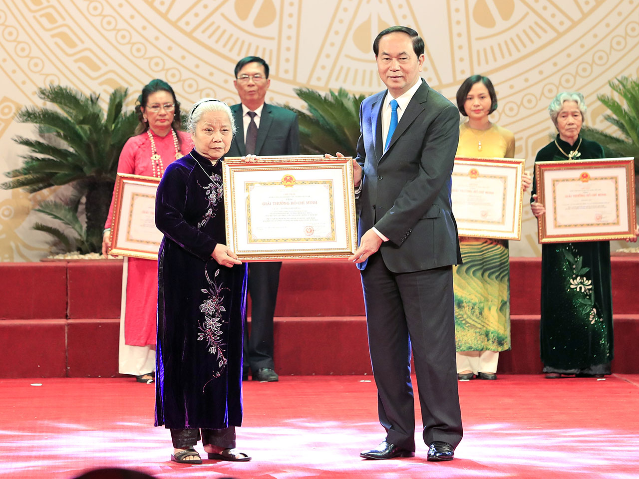 | Chủ tịch nước Trần Đại Quang trao Giải thưởng Hồ Chí Minh cho đại diện gia đình liệt sĩ, nhà báo Lương Nghĩa Dũng - nguyên phóng viên TTTXVN trong thời kỳ kháng chiến chống Mỹ cứu nước, tháng 5/2017 |
