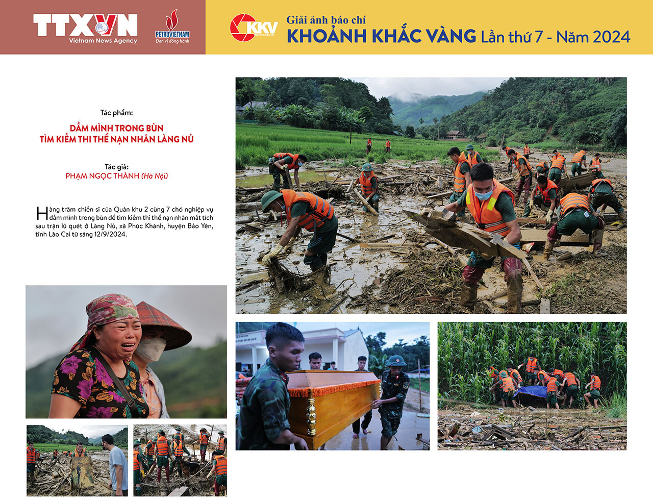 | Tác phẩm "Bộ đội dầm mình trong bùn tìm kiếm thi thể nạn nhân Làng Nủ" - giải Nhất ảnh bộ của tác giả Phạm Ngọc Thành (Hà Nội) |