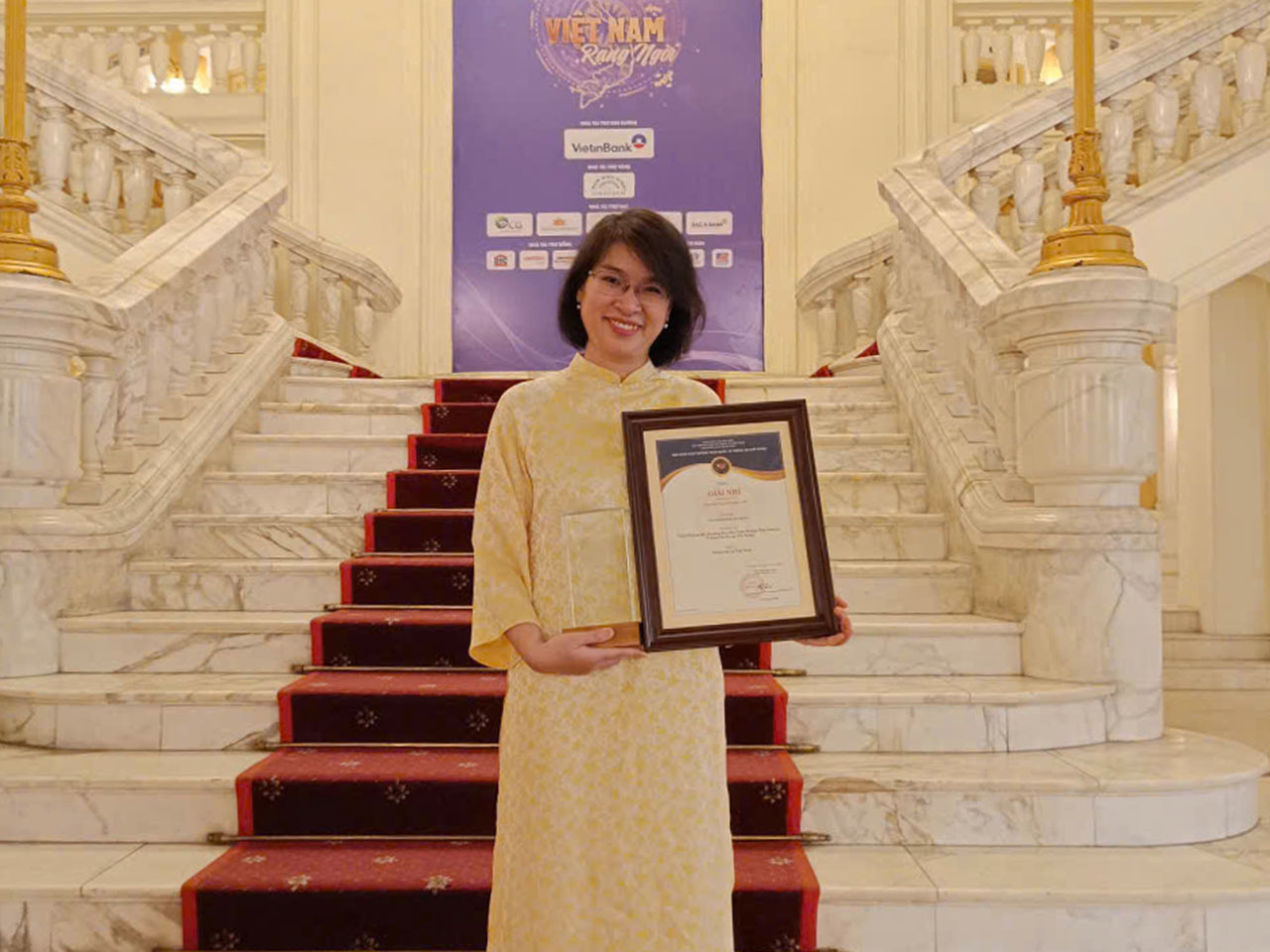 | Biên tập viên Ban biên tập tin Thế giới Trần Phương Hà tại lễ trao Giải thưởng toàn quốc về thông tin đối ngoại lần thứ X, tháng 12/2024 |