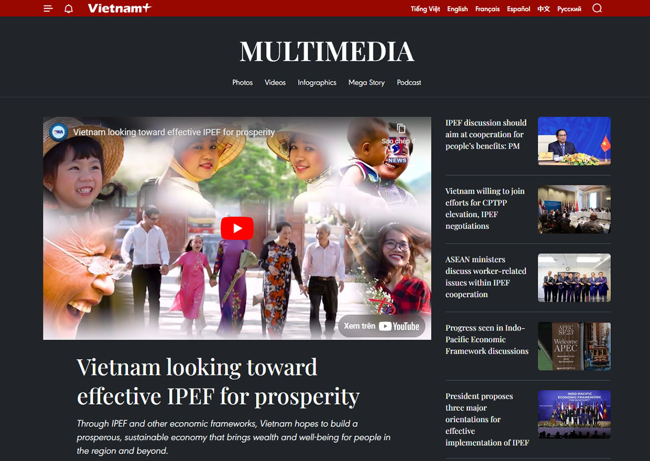 | Video “Việt Nam hướng tới một IPEF hiệu quả vì thịnh vượng khu vực” trên báo điện tử VietnamPlus, tháng 12/2023 |