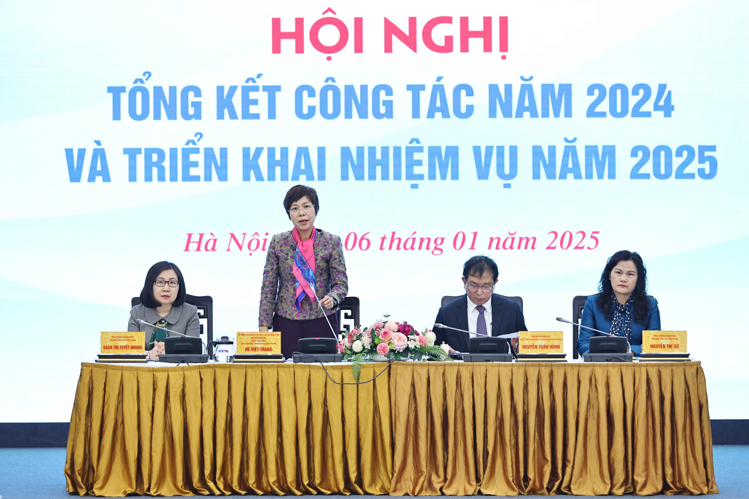 Tổng giám đốc TTXVN Vũ Việt Trang và các Phó tổng giám đốc: Nguyễn Tuấn Hùng, Đoàn Thị Tuyết Nhung và Nguyễn Thị Sự chủ trì Hội nghị tổng kết công tác năm 2024 và triển khai nhiệm vụ năm 2025, ngày 6/1