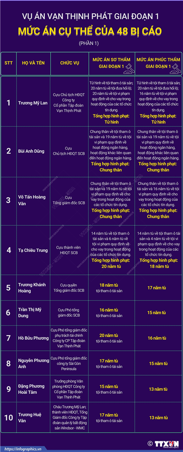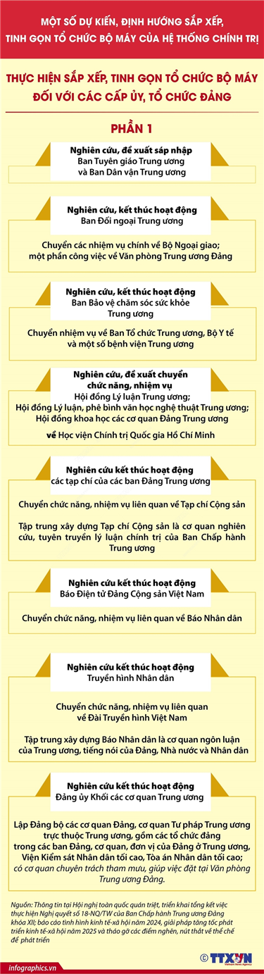 Tin cùng chuyên mục Từ năm 2025: Chỉ tuyển sinh vào lớp 6 theo phương thức xét tuyển15/01/2025 15:09Bộ Giáo dục và Đào tạo vừa chính thức ban hành Thông tư số 30/TT-BGDĐT về Quy chế tuyển sinh Trung học Cơ sở và tuyển sinh Trung học Phổ thông. Theo đó, từ năm 2025, các trường THCS phải xét tuyển học sinh vào lớp 6, không được tổ chức thi. Kế hoạch tuyển... Từ 1/1/2025: Người dân có thể được đăng ký xe ngoài giờ làm việc, ngày nghỉ, ngày lễ02/01/2025 15:08Theo Khoản 1 Điều 5 Thông tư 79/2024/TT-BCA của Bộ Công an quy định về cấp, thu hồi chứng nhận đăng ký xe, biển số xe cơ giới, xe máy chuyên dụng, từ 1/1/2025, Cơ quan đăng ký xe phải tổ chức tiếp nhận hồ sơ đăng ký xe các ngày làm việc trong tuần. Trường hợp cần thiết,... Từ 1/1/2025: Khách hàng sẽ bị tạm dừng giao dịch thẻ bằng phương thức điện tử nếu chưa xác thực sinh trắc học02/01/2025 15:07Theo Thông tư 17/2024/TT-NHNN; Thông tư 18/2024/TT-NHNN và Công văn 9913/NHNN/TT của Ngân hàng Nhà nước, từ 1/1/2025, nếu không xác thực sinh trắc học, khách hàng sẽ bị TẠM DỪNG giao dịch trực tuyến bằng thẻ, giao dịch thanh toán thẻ trực tuyến và giao dịch... Mức án cụ thể của 48 bị cáo trong vụ án Vạn Thịnh Phát giai đoạn 106/12/2024 15:02Ngày 3/12/2024, sau gần một tháng xét xử và nghị án, Hội đồng xét xử của phiên tòa phúc thẩm giai đoạn 1 vụ án xảy ra tại Công ty Cổ phần Tập đoàn Vạn Thịnh Phát (Tập đoàn Vạn Thịnh Phát) và Ngân hàng Thương mại Cổ phần... Tổng kết Nghị quyết số 18-NQ/TW: Điều chỉnh thời gian thực hiện một số nội dung06/12/2024 15:00Để đáp ứng yêu cầu sắp xếp, tinh gọn tổ chức bộ máy gắn với kết quả tổng kết Nghị quyết số 18-NQ/TW của Ban Chấp hành Trung ương khóa XII, bảo đảm đồng bộ với thời gian tổ chức đại hội đảng bộ các cấp tiến tới Đại hội đại biểu toàn quốc lần thứ XIV của Đảng; thực hiện ý kiến chỉ đạo của đồng... Dự kiến sắp xếp, tinh gọn tổ chức bộ máy đối với các cấp ủy, tổ chức đảng (phần 1)03/12/2024 15:35Tại Hội nghị toàn quốc quán triệt, triển khai tổng kết việc thực hiện Nghị quyết số 18-NQ/TW của Ban Chấp hành Trung ương Đảng khóa XII và một số nội dung quan trọng ngày 1/12/2024, Ủy viên Bộ Chính trị, Bí thư Trung ương Đảng, Trưởng Ban Tổ chức Trung ương Lê Minh Hưng...