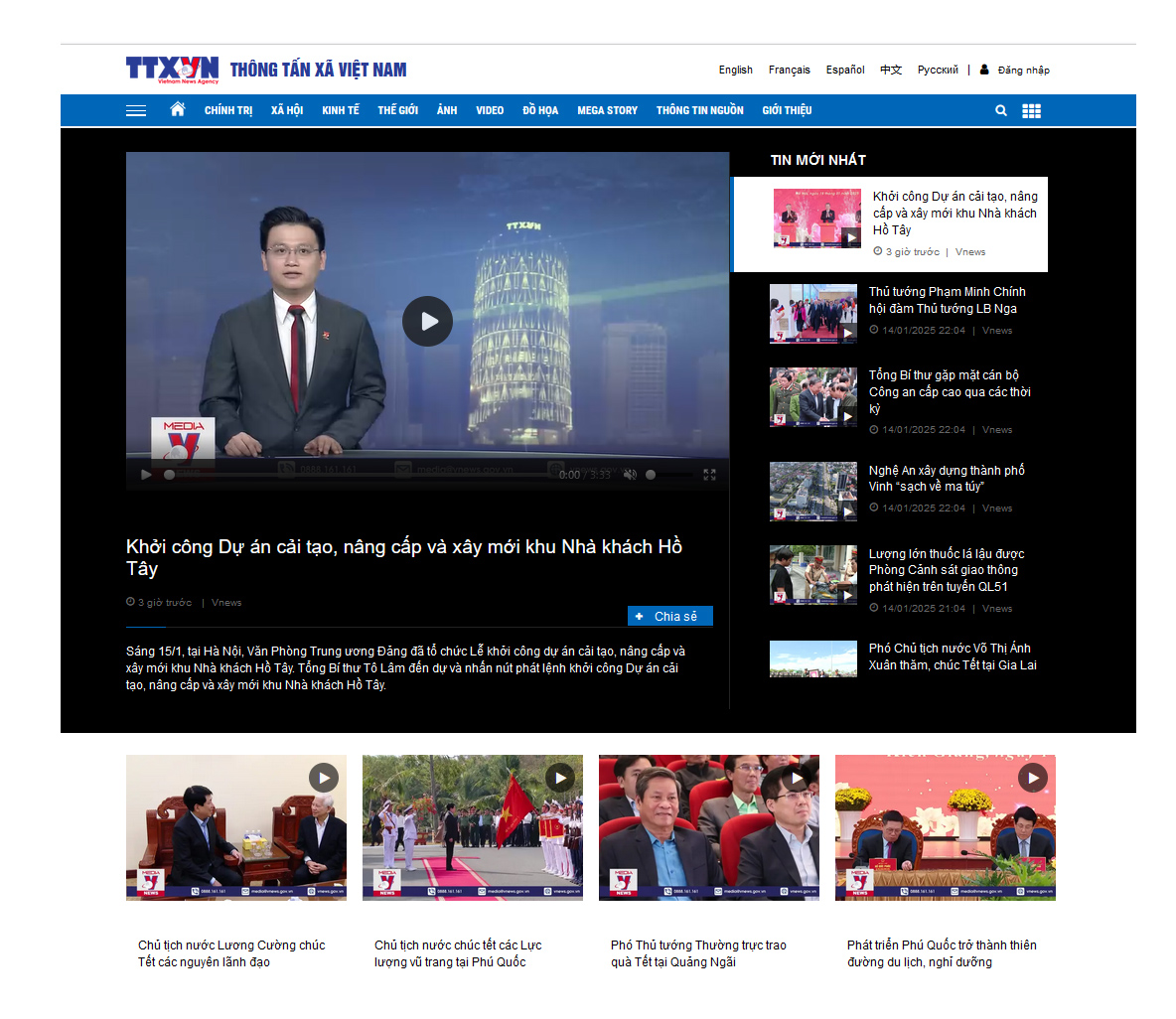 Việc đăng phát các thông tin video trên các nền tảng mạng xã hội vẫn được tiếp tục với tên TTXVN và VNA. Các nền tảng số và các trang web của Truyền hình Thông tấn sẽ tiến hành đổi tên, đăng ký tên miền phù hợp với đơn vị sẽ hình thành trong tương lai. Dữ liệu và tài sản trên không gian mạng của Trung tâm Truyền hình Thông tấn là tài sản của TTXVN./.