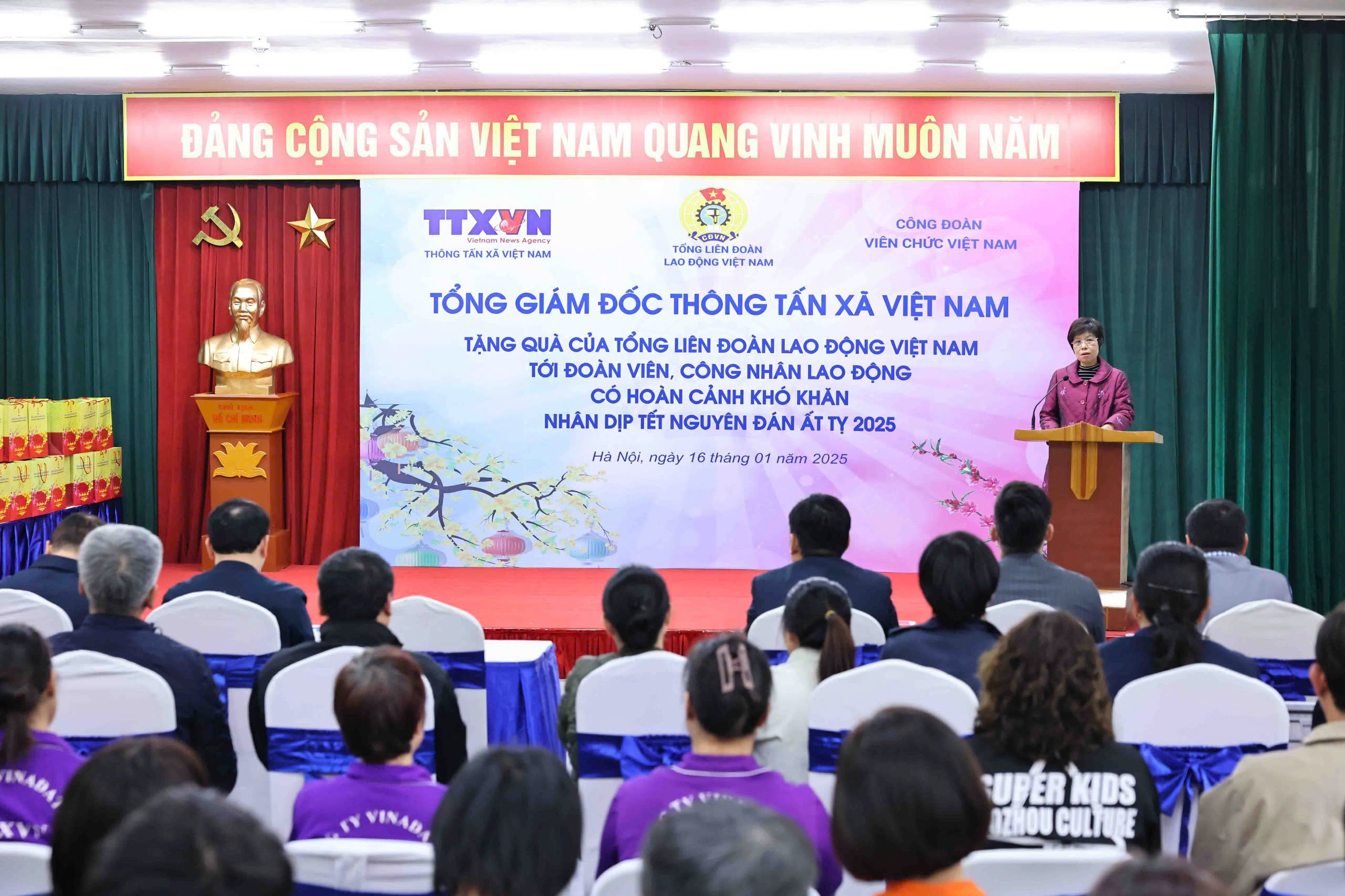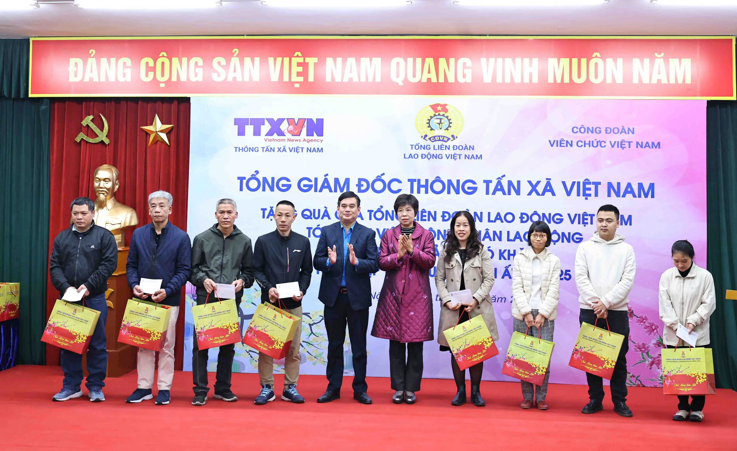 Chiều 16/1, tại Công ty In và Thương mại, Tổng giám đốc Thông tấn xã Việt Nam (TTXVN) Vũ Việt Trang và Lãnh đạo Công đoàn Viên chức Việt Nam đã trao 50 suất quà (mỗi suất trị giá 1,3 triệu đồng) tặng 50 đoàn viên, người lao động có hoàn cảnh khó khăn của TTXVN nhân dịp Tết Ất Tỵ 2025.