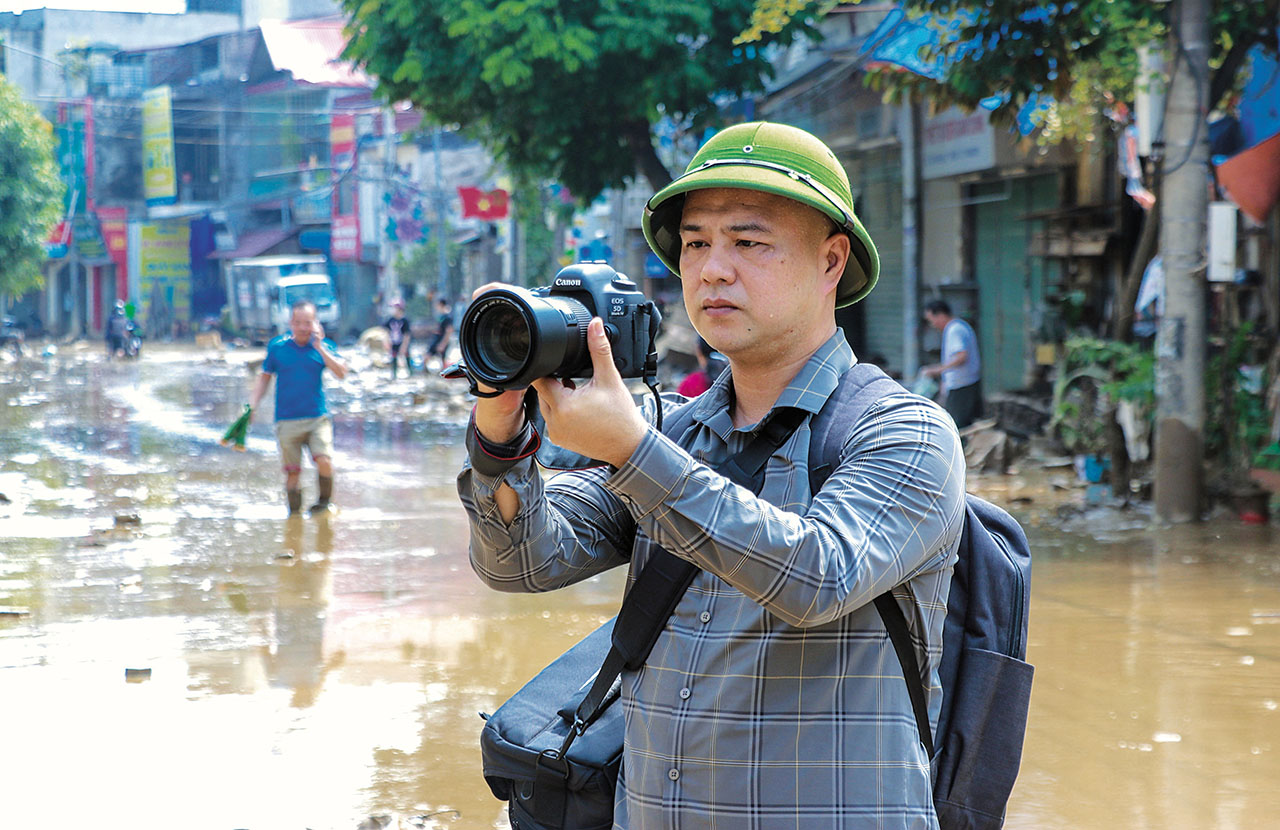 Những ngày bão lũ, phóng viên tác nghiệp trong điều kiện không nước, không điện và không sóng điện thoại, nhất là tâm thế vừa lo cho gia đình, người thân bị ngập vừa lo đảm bảo thông tin. Nhưng trách nhiệm của người “chiến sĩ” trên mặt trận thông tin đã thôi thúc chúng tôi gác lại việc gia đình để “cắm” chốt tại cơ quan, sẵn sàng lên thuyền cứu hộ để tiếp cận những gia đình đang mắc kẹt trong khu vực bị ngập sâu.